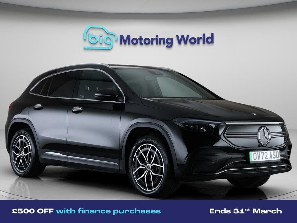 £500 towards your finance depo-Our Mercedes-Benz EQA is finished in Black. Specification includes a range of fantastic features including £500 towards your finance deposit, Comfort Pack, Panoramic Roof, 19'' Alloy wheels, Part Leather Seats, Air Suspension, Apple CarPlay, AMG body styling, Premium, Android Auto Specification information is supplied by CAPHPI and may vary to the actual car. This data does not form any part of a buying contact. Please check specification prior to purchase in-store. The MOT is valid until September 2026, visit bigmotoringworld.co.uk for more photos, a 360 tour, service history and a free HPI report.Were BIG on peace of mind and this Black Mercedes-Benz EQA has completed our comprehensive 200 point inspection and passed all checks. Its ready for you to drive away with immediate collection in-store. We include a 90-day warranty as standard plus an option to extend for up to 3 years.Reserve this car exclusively for you, safely and securely at bigmotoringworld.co.uk, with a fully refundable £99 deposit. Test drive before you buy, with no commitment, no hassle and a completely haggle free experience. Still searching and want to see thousands more cars? We are BIG on choice with over 8000 cars to choose from.Visit our award winning web site bigmotoringworld.co.uk.Were Big Motoring World and were BIG on what matters to you.