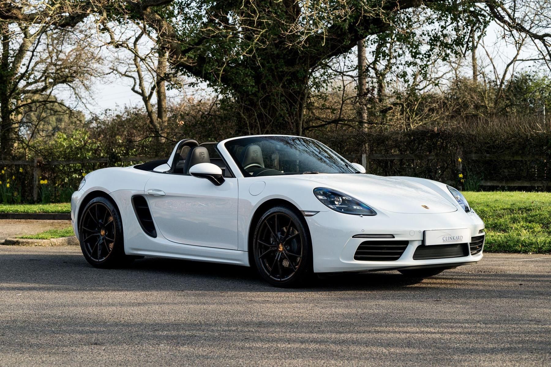 2020 '20 Plate' With 24,370 Miles. Finished In Carrera White With Black Leather Sports Seats. Porsche Doppelkupplung (PDK), Sport Chrono Package including mode switch, 20-inch Carrera S wheels, LED headlights including Porsche Dynamic Light System Plus (PDLS Plus), Sports seats Plus (2-way, electric), ParkAssist (front and rear) with reversing camera, BOSE® surround sound-system, Two-zone automatic climate control, Sports tailpipes, Roll-over bars painted in exterior colour, Automatically dimming mirrors with integrated rain sensor, Heated multifunction steering wheel, Seat heating, Cruise Control, Electrically folding exterior mirrors, Power steering Plus, Porsche Crest embossed on headrests, Wheel centres with full-colour Porsche Crest, 64-litre fuel tank, ''718'' logo, Black Convertible Top And Black standard int. i.c.w. sports seats. This Boxster Has A Detailed Full Service History Shown Below: 07/11/2020 @ 4,583 Miles - Porsche Centre Bristol.17/11/2021 @ 8,684 Miles - VW Audi Cars LTS.14/02/2022 @ 10,501 Miles - Porsche Centre Bristol.02/03/2023 @ 12,100 Miles - VW Audi Cars LTD.13/03/2024 @ 16,880 Miles - Redline Performance.11/03/2025 @ 21,593 Miles - Porsche Centre Exeter.