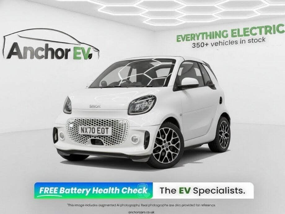 Anchor EV is proud to present this 2020 Smart EQ Fortwo Prime Exclusive Cabrio, a distinctive and compact two-door electric convertible finished in white. Perfectly designed for urban driving, the Smart EQ Fortwo combines eye-catching styling with impressive manoeuvrability, making it ideal for navigating city streets and tight parking spaces. Its compact footprint and convertible design create a fun and practical driving experience, while the modern electric powertrain delivers quiet and efficient performance. Powered by a fully electric motor paired with an automatic transmission, this Smart EQ Fortwo offers smooth and effortless acceleration that suits city driving perfectly. The all-electric powertrain provides zero tailpipe emissions and a quiet driving experience, making it a great choice for environmentally conscious drivers and urban commuters. Inside, the cabin is cleverly designed to maximise comfort and usability despite its compact size. The interior layout is modern and well-organised, offering supportive seating and a bright, open feel enhanced by the cabrio roof design. For further information or to arrange a viewing, please contact Anchor EV on 0118 443 3024 or visit www.anchorcars.co.uk/ev.