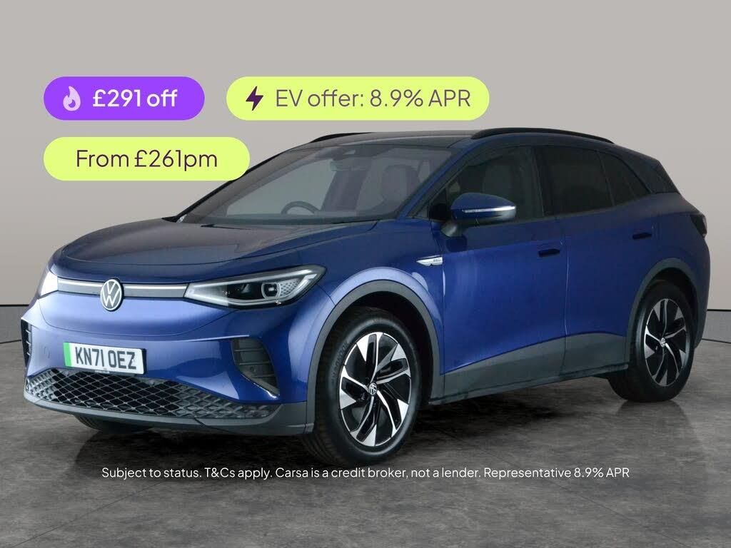 Experience comfort and innovation with this blue Volkswagen ID.4. Enjoy the luxury of heated seats and a heated steering wheel, perfect for those colder mornings. Stay connected with Apple CarPlay and Bluetooth, and keep your devices powered with a wireless charger. Adaptive cruise control and the included Assistance and Comfort Packs offer a smooth and relaxing drive. The ID.4s keyless start and convenient charging lead make every journey easy. Discover the future of driving in this standout electric SUV. 2 services recorded, last serviced on 03/12/2025 at 36,364 miles. MOT to 17/12/2026. Visit our website for service history, online valuation, full vehicle specification plus multiple images. This vehicle is VAT qualifying. Any feature/option specified here is from 3rd party data. We cannot guarantee the accuracy of any specification supplied by a 3rd party. We recommend that you physically check the specification of the vehicle on site prior to purchase. This information does not form part of the buying contract. Terms & Conditions apply. We have over 2,000 cars available from our 10 national branches, check our website to see all our stock. Our Trustpilot rating is 4.4/5 with over 9,000 reviews.