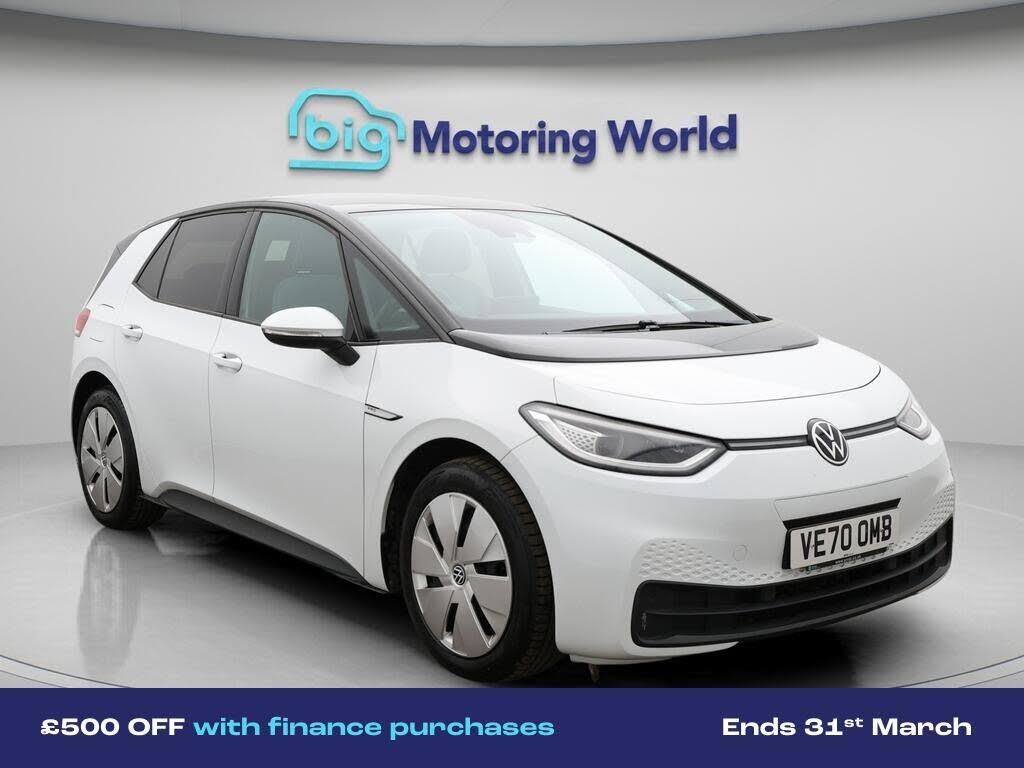 £500 towards your finance depo-Our Volkswagen ID.3 comes with optional extras worth £620. Specification includes a range of fantastic features including £500 towards your finance deposit, Comfort Pack, Apple CarPlay, Adaptive Cruise Control, Lane Assist, Privacy Glass, Gesture Control, Rear View Camera, Internet, Bluetooth Specification information is supplied by CAPHPI and may vary to the actual car. This data does not form any part of a buying contact. Please check specification prior to purchase in-store. The MOT is valid until December 2026, visit bigmotoringworld.co.uk for more photos, a 360 tour, service history and a free HPI report.Were BIG on peace of mind and this White Volkswagen ID.3 has completed our comprehensive 200 point inspection and passed all checks. Its ready for you to drive away with immediate collection in-store. We include a 90-day warranty as standard plus an option to extend for up to 3 years.Reserve this car exclusively for you, safely and securely at bigmotoringworld.co.uk, with a fully refundable £99 deposit. Test drive before you buy, with no commitment, no hassle and a completely haggle free experience. Still searching and want to see thousands more cars? We are BIG on choice with over 8000 cars to choose from.Visit our award winning web site bigmotoringworld.co.uk.Were Big Motoring World and were BIG on what matters to you.