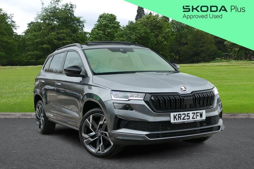 Simpsons Skoda Preston are delighted to offer this stunning 2025(25) Skoda Karoq Sportline Edition 1.5 TSI 150PS DSG automatic finished in the elegant Graphite Grey metallic paint with the 19" Sagittarius alloy wheels. Equipped with an impressive array of driver assistance features designed to enhance safety and convenience on every journey. These include adaptive cruise control, front assist & lane assist. Front and rear parking sensors, along with a rear-view camera, make manoeuvring simple in both urban settings and at home. For colder conditions, a heated windscreen and heated seats in both the front and rear, ensuring comfort throughout the cabin. In warmer months, the electrically opening panoramic glass sunroof creates a bright and refreshing environment with plenty of natural light and airflow. Navigation is made effortless with integrated satellite navigation, displayed on a high-resolution 9.2" infotainment touchscreen or directly behind the steering wheel on the fully customisable 10.25" virtual cockpit. The vehicle also comes with Bluetooth connectivity, DAB radio, wireless Apple CarPlay and Android Auto, giving you seamless access to music, podcasts and hands-free calling. Not forgetting the dynamic chassis control, electric tailgate, plus matrix LED headlights lighting up the road ahead. ULEZ compliant. Part exchanges welcome. As a family-owned business with over 80 years of experience, the Simpson family has looked after the motoring needs of Lancashire since 1944. We are driven by customer satisfaction and all our cars are carefully prepared to our own and Skoda's exacting approved standards, both mechanically and cosmetically. Benefits from the remaining manufactures warranty until 03/06/2028. For more information, to book your test drive or to request a personalised walk-around video of a vehicle, please contact our team at Simpsons Skoda Preston.