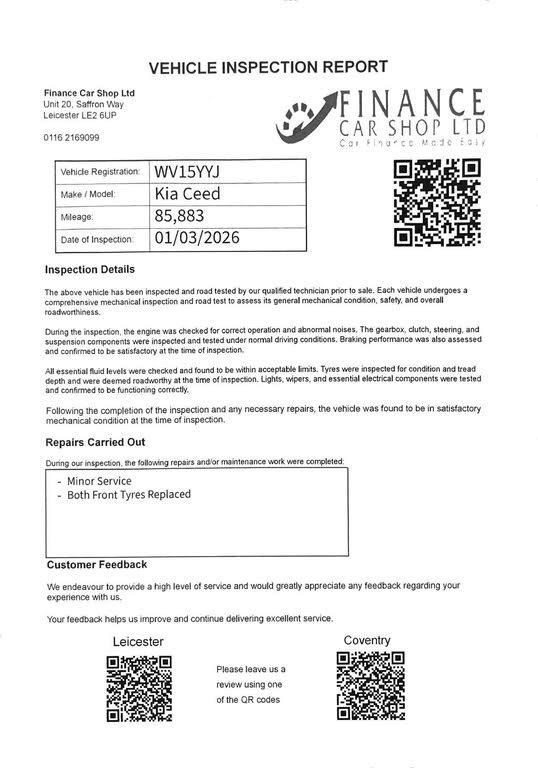 Kia Ceed 1.6 CRDi EcoDynamics 1 Euro 5 (s/s) 5 DoorReliable and economical Kia Ceed 1.6 CRDi EcoDynamics 1 in great condition. A practical hatchback with modern features, perfect for commuting, families, or everyday driving.Key Details1.6 CRDi Diesel EngineManual GearboxEuro 5 (Stop/Start)5 DoorsPart Service HistoryRecently ServicedFeaturesBluetooth ConnectivityRear Parking SensorsAir ConditioningAlloy WheelsUSB / AUX InputElectric WindowsElectric MirrorsRemote Central LockingMultifunction Steering WheelDrives very well with a smooth engine and gearbox. Clean inside and out, well-maintained, and ready to drive away. Practical, comfortable, and economical to run. + 6 MONTHS WARRANTY INCLUDED + 6 MONTHS BREAKDOWN COVER + EXTENDED WARRANTY AVAILABLE + FINANCE OPTIONS AVAILABLE UPON REQUEST + DELIVERY CAN ONLY BE ARRANGED ONCE THE VEHICLE HAS BEEN VIEWED & INSPECTED IN PERSON AT OUR PREMISES + PHOTO ID IS REQUIRED FOR ALL VIEWINGS AND TEST DRIVES + WE CAN BE REACHED VIA WHATSAPP ON 07458 300017 FEEL FREE TO MESSAGE US + PLEASE NOTE, THE PRICE IS FIXED ON THIS VEHICLE. KINDLY BE AWARE OF THIS PRIOR TO ARRANGING A VIEWING + WE HAVE OVER 50 VEHICLES IN STOCK. AS NOT ALL VEHICLES ARE HELD ON SITE, PLEASE ENSURE YOU CALL IN ADVANCE BEFORE MAKING YOUR JOURNEY + BANK TRANSFER ONLY + MORE CARS AVAILABLE AT:WWW.FINANCECARSHOPLTD.CO.UK +-+SERVICE HISTORY+JUST SERVICED-+ WHATSAPP US ON 07458 300017 + OPEN 7 DAYS A WEEK + BANK TRANSFER ONLY + VIEWING BY APPOINTMENT +