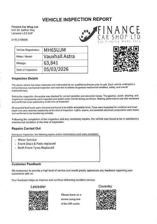 Vauxhall Astra 1.6 CDTi BlueInjection Elite Nav Euro 6 (s/s) 5 DoorWell maintained Vauxhall Astra Elite Nav in great condition. A stylish, comfortable and very economical diesel hatchback with a high specification and low running costs.Key Details1.6 CDTi BlueInjection Diesel EngineManual GearboxEuro 6 (Stop/Start)5 Doors2 Former KeepersVery economical to runFeaturesSatellite NavigationFull Leather InteriorAlloy WheelsCruise ControlAir ConditioningBluetooth ConnectivityMultifunction Steering WheelElectric WindowsElectric MirrorsRemote Central LockingUSB / AUX InputService HistoryFull Service HistoryRecently ServicedWell maintainedConditionDrives very well with a smooth engine and gearbox. Clean inside and out for its age, comfortable and practical with a spacious interior and boot. + 6 MONTHS WARRANTY INCLUDED + 6 MONTHS BREAKDOWN COVER + EXTENDED WARRANTY AVAILABLE + FINANCE OPTIONS AVAILABLE UPON REQUEST + DELIVERY CAN ONLY BE ARRANGED ONCE THE VEHICLE HAS BEEN VIEWED & INSPECTED IN PERSON AT OUR PREMISES + PHOTO ID IS REQUIRED FOR ALL VIEWINGS AND TEST DRIVES + WE CAN BE REACHED VIA WHATSAPP ON 07458 300017 FEEL FREE TO MESSAGE US + PLEASE NOTE, THE PRICE IS FIXED ON THIS VEHICLE. KINDLY BE AWARE OF THIS PRIOR TO ARRANGING A VIEWING + WE HAVE OVER 50 VEHICLES IN STOCK. AS NOT ALL VEHICLES ARE HELD ON SITE, PLEASE ENSURE YOU CALL IN ADVANCE BEFORE MAKING YOUR JOURNEY + BANK TRANSFER ONLY + MORE CARS AVAILABLE AT:WWW.FINANCECARSHOPLTD.CO.UK +-+FULL SERVIICE HISTORY+SAT NAV-+ WHATSAPP US ON 07458 300017 + OPEN 7 DAYS A WEEK + BANK TRANSFER ONLY + VIEWING BY APPOINTMENT +