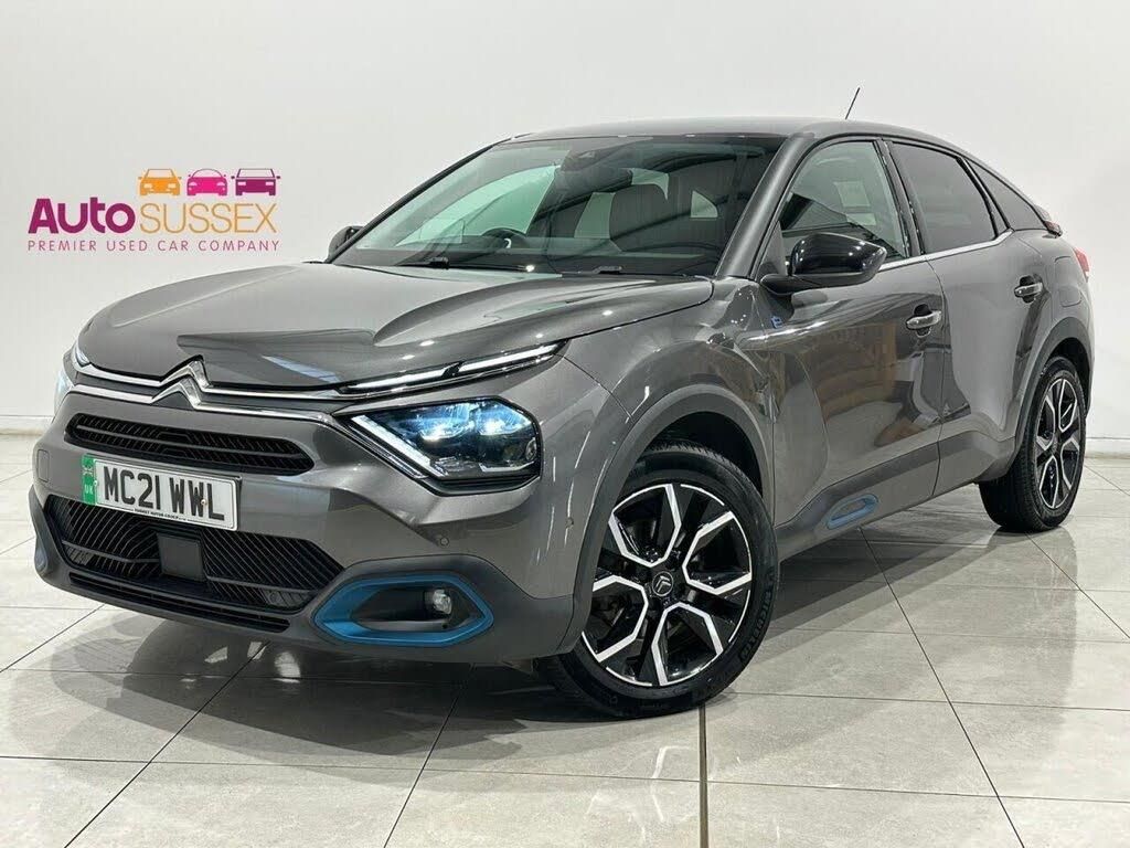 10in High Resolution Touchscreen User Interface, 18in Alloy Wheels - Bi-Tone Crosslight Diamond Cut, 5.5in Backlit Full-TFT Drivers Instrument Cluster, 7.4kW Single-Phase Onboard Charger, ABS - Anti-Lock Braking System, Active Blind Spot Detection, Adaptive Cruise Control with Speed Limiter, Anodised Blue Colour Pack, Anti-Theft Alarm - Volumetric Protection, Automatic Dual Zone Air Conditioning, Automatic Headlight Activation with High Beam Assist, Boot Light, Bumpers - Body Coloured, Citroen Connect Box with Emergency and Assistance System, Citroen Connect Nav, City Smart Pad Support - Universal Tablet Cradle, Compressor with Puncture Repair Kit, Dashboard Tray in Front Cabin, Deluxe Leather Steering Wheel with Two Command Blocks, Driver and Front Passenger Airbags, Driver and Passenger Sunvisor with Illuminated Vanity Mirror, ESP - Electronic Stability Programme, Electric Parking Brake, Electric Power Steering, Electric Windows - Front and Rear, Electrically Heated and Folding Door Mirrors with Courtesy Lighting, Electrochrome Interior Rear View Mirror with Automatic Day-Night Switching, Front Seat Belt Pretensioners, Front and Rear Interior Lighting - LED, Gloss Black Rear Skirt, Head-Up Display, Heated Steering Wheel, Height Adjustable Drivers Seat with Adjustable Lumbar Support, Height Adjustable Passengers Seat, Height and Reach Adjustable Steering Wheel, High Level Acoustic Insulation Pack, Hill Start Assist, In-Crash Braking, Keyless Entry and Start, LED Daytime Running Lights in V Signature, LED Front Fog Lights with Static Cornering Function, LED Headlights, Manual Child Locks, Manual Deactivation of Front Passenger Airbag, Map Pockets on Front Seat Backs, Matt Black A-Pillar and Gloss Black B-Pillar, Mode 3 Charging Cable with Type 2 Connectors, Obsidian Black Painted External Rear View Mirrors, Parking Aid - Front and Rear and Lateral, Post Collision Safety Brake, Rain Sensing Automatic Front Windscreen Wipers, Raised Central Console with Armrest with Two Cupholders, Remote Central Locking with Deadlocking, Remote Temperature Pre-Conditioning, Row 1 - 12V Power Outlet and 1x USB Type-C Socket for Charging and Data Connection and 1x USB Type-A Socket for Charging, Row 1 Side Thorax Airbags, Row 1 and 2 Curtain Airbags, Row 2 - 1x USB Type-A Socket for Charging, Safety Pack Plus, Seatbelt Unfastened on the Move Warning, Seats Rear - Split Folding, Side Windows with Chrome Detail - Rear Window Dark Tinted, Suspension with Progressive Hydraulic Cushions - PHC, Top Rear Vision Reversing Camera, Tyre Under Inflation Indicator, Visio Park, Welcome and Goodbye Lighting