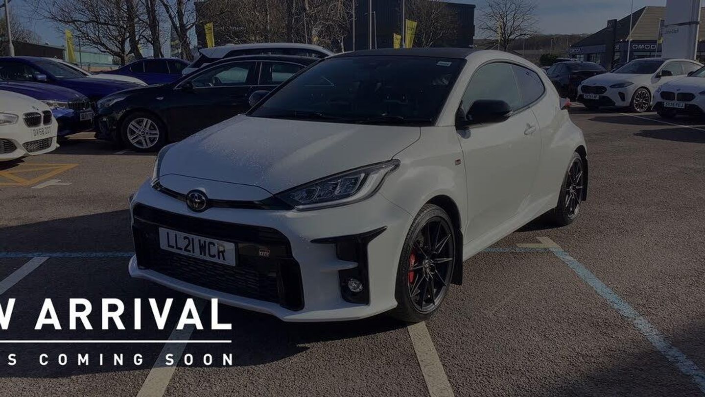 Apple car play/Android Auto, Coloured TFT multi informational display, eCall emergency system, Emergency steering assist, Intelligent adaptive cruise control, Lane Departure Alert (LDA) switch on steering wheel, Lane trace assist, Power Steering, Pre-collision system (PCS), Reversing camera, Road sign assist - RSA, Circuit tuned GR suspension, Double wishbone rear suspension, GR-Four AWD switch, MacPherson front suspension, Vehicle Stability Control (VSC), 6 speakers, 8" Multimedia display touch screen, DAB Digital radio, Toyota touch 2 multimedia system, USB connection, Adaptive high beam assist, Adaptive LED Headlights, Air intakes for brake cooling, Auto dimming eletrochromatic rear view mirror, Auto windscreen wipers, Automatic headlights, Automatic headlights cut-off, Automatically retractable door mirrors, Black contrasting colour door mirrors, Black rear spoiler, Body coloured door handles, Body coloured rear bumper, Carbon fibre roof wrap, Door scuff plates, Dual exhaust pipes, Electric adjustable heated door mirrors, Follow me home headlights, Front auto power windows with anti jam protection, Gloss black GR front bumper, GR badges 1 front, 1 rear and 2 sides, GR lower front grille, Integrated LED indicators in door mirrors, LED daytime running lights, LED fog lights, LED High mounted stop lamp, LED rear combination lights, Piano black side air vents, Privacy glass on rear and back windows, Rear auto power windows with anti jam protection, Rear window defogger, Shark fin antenna, 12V socket in front, 2 rear head restraints, 3 spoke leather sports steering wheel, 60/40 split folding rear seat, Aluminium pedals, Clean air filter, Driver and passenger headrests, Driver's sun visor with vanity mirror, Dual zone automatic air conditioning, Front bottle holders, Front cup holders, Front map light, Front sports seats, GR floor mats, GR logo on steering wheel, GR Ultrasuede leather upholstery, Height adjustable driver's seat, Isofix child rear seat restraints, Leather gearshift, Leather handbrake, Manual slide adjustable on driver's and passenger seats, Microphone on front personal light, Multimedia switch on steering wheel, Pollen filter, Red stitching on gearshift, Red stitching on handbrake lever, Satin chrome interior door handles, Soft tonneau cover, Ticket holder on driver's sun visor, Tilt/telescopic steering column, ABS with Brake Assist, Airbags - driver and front passenger, Driver and passenger side airbags, Emergency brake light system (EBS), Front passenger airbag on/off switch, Front seatbelt reminder, Hill start assist control (HAC), Rear passenger airbag, Rear seat belt reminder, Red brake callipers, Red sport front and rear brake pads, Start holding control, Torsen limited slip differentials x2, Tyre pressure warning system, Alarm/immobiliser, Keyless smart entry with push button start, 18" 10 spoke forged alloy wheels with Michelin pilot sport, Tyre repair kit