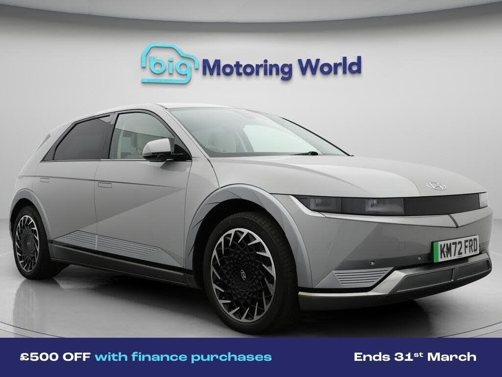 £500 towards your finance depo-Our Hyundai IONIQ 5 is finished in Grey. Specification includes a range of fantastic features including £500 towards your finance deposit, Head up Display, 20'' Alloy Wheels, Apple CarPlay, Heated Seats, Wireless Phone Charging, Comfort Ventilated Front Seats, Heated Steering Wheel, Bluetooth, Blind Spot Assist Specification information is supplied by CAPHPI and may vary to the actual car. This data does not form any part of a buying contact. Please check specification prior to purchase in-store. The MOT is valid until November 2026, visit bigmotoringworld.co.uk for more photos, a 360 tour, service history and a free HPI report.Were BIG on peace of mind and this Grey Hyundai IONIQ 5 has completed our comprehensive 200 point inspection and passed all checks. Its ready for you to drive away with immediate collection in-store. We include a 90-day warranty as standard plus an option to extend for up to 3 years.Reserve this car exclusively for you, safely and securely at bigmotoringworld.co.uk, with a fully refundable £99 deposit. Test drive before you buy, with no commitment, no hassle and a completely haggle free experience. Still searching and want to see thousands more cars? We are BIG on choice with over 8000 cars to choose from.Visit our award winning web site bigmotoringworld.co.uk.Were Big Motoring World and were BIG on what matters to you.