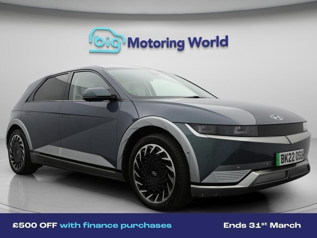 £500 towards your finance depo-Our Hyundai IONIQ 5 is finished in Green. Specification includes a range of fantastic features including £500 towards your finance deposit, All Wheel Drive, Head up Display, 20'' Alloy Wheels, Apple CarPlay, Heated Seats, Wireless Phone Charging, Comfort Ventilated Front Seats, Heated Steering Wheel, Bluetooth Specification information is supplied by CAPHPI and may vary to the actual car. This data does not form any part of a buying contact. Please check specification prior to purchase in-store. The MOT is valid until March 2027, visit bigmotoringworld.co.uk for more photos, a 360 tour, service history and a free HPI report.Were BIG on peace of mind and this Green Hyundai IONIQ 5 has completed our comprehensive 200 point inspection and passed all checks. Its ready for you to drive away with immediate collection in-store. We include a 90-day warranty as standard plus an option to extend for up to 3 years.Reserve this car exclusively for you, safely and securely at bigmotoringworld.co.uk, with a fully refundable £99 deposit. Test drive before you buy, with no commitment, no hassle and a completely haggle free experience. Still searching and want to see thousands more cars? We are BIG on choice with over 8000 cars to choose from.Visit our award winning web site bigmotoringworld.co.uk.Were Big Motoring World and were BIG on what matters to you.