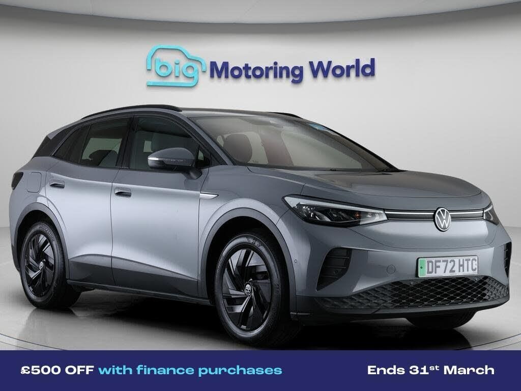 £500 towards your finance depo-Our Volkswagen ID.4 is finished in Grey. Specification includes a range of fantastic features including £500 towards your finance deposit, Comfort Pack, Part Leather Seats, Apple CarPlay, Adaptive Cruise Control, Android Auto, Heated Seats, Rear View Camera, Heated Steering Wheel, Internet Specification information is supplied by CAPHPI and may vary to the actual car. This data does not form any part of a buying contact. Please check specification prior to purchase in-store. The MOT is valid until November 2026, visit bigmotoringworld.co.uk for more photos, a 360 tour, service history and a free HPI report.Were BIG on peace of mind and this Grey Volkswagen ID.4 has completed our comprehensive 200 point inspection and passed all checks. Its ready for you to drive away with immediate collection in-store. We include a 90-day warranty as standard plus an option to extend for up to 3 years.Reserve this car exclusively for you, safely and securely at bigmotoringworld.co.uk, with a fully refundable £99 deposit. Test drive before you buy, with no commitment, no hassle and a completely haggle free experience. Still searching and want to see thousands more cars? We are BIG on choice with over 8000 cars to choose from.Visit our award winning web site bigmotoringworld.co.uk.Were Big Motoring World and were BIG on what matters to you.