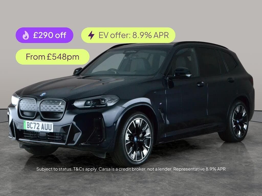Experience luxury with this BMW iX3 M Sport Pro. Enjoy the panoramic roof, upgraded Harman/Kardon sound system and intuitive gesture control. Stay effortlessly connected with Apple CarPlay and drive with confidence thanks to a head-up display, Parking Assistant Plus, surround view and a reversing camera. Keyless entry and a full suite of driving assistants ensure a seamless drive. Sleek LED headlights complete the bold black styling of this electric SUV. 1 service recorded, last serviced on 13/02/2025 at 10,938 miles. MOT to 15/02/2027. Visit our website for service history, online valuation, full vehicle specification plus multiple images. Certain features listed may be available via subscription packages at extra costs, please consult with BMW for details. This vehicle is VAT qualifying. Any feature/option specified here is from 3rd party data. We cannot guarantee the accuracy of any specification supplied by a 3rd party. We recommend that you physically check the specification of the vehicle on site prior to purchase. This information does not form part of the buying contract. Terms & Conditions apply. We have over 2,000 cars available from our 10 national branches, check our website to see all our stock. Our Trustpilot rating is 4.4/5 with over 9,000 reviews.