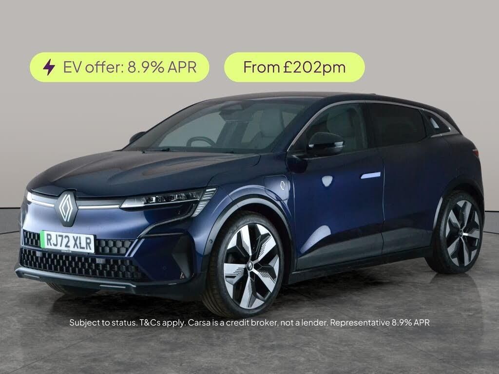 Experience the future of driving with this blue Renault Megane E-tech electric hatchback. Enjoy luxurious touches like heated seats, a heated steering wheel, driver memory seat, and electric seats. Stay seamlessly connected with Apple CarPlay and onboard Wifi, while LED headlights and Park Assist make every journey effortless. Advanced safety features include Adaptive Cruise Control, Blind Spot Assist, Lane Departure Warning, and a handy reversing camera. With keyless entry and built-in sat nav, this Megane delivers next-level convenience and comfort. 3 services recorded, last serviced on 05/03/2026 at 30,689 miles. MOT to 30/12/2026. Visit our website for service history, online valuation, full vehicle specification plus multiple images. This vehicle is VAT qualifying. Any feature/option specified here is from 3rd party data. We cannot guarantee the accuracy of any specification supplied by a 3rd party. We recommend that you physically check the specification of the vehicle on site prior to purchase. This information does not form part of the buying contract. Terms & Conditions apply. We have over 2,000 cars available from our 10 national branches, check our website to see all our stock. Our Trustpilot rating is 4.4/5 with over 9,000 reviews.