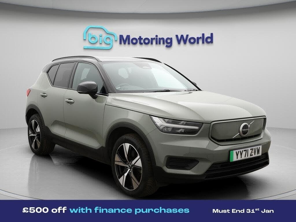 £500 towards your finance depo-Our Volvo XC40 is finished in Green. Specification includes a range of fantastic features including £500 towards your finance deposit, Dynamic Chassis Control, All Wheel Drive, 19'' Alloy wheels, Privacy Glass, Gesture Tailgate, Bluetooth, 2 Zone Climate, Cruise Control, Sports Seats Specification information is supplied by CAPHPI and may vary to the actual car. This data does not form any part of a buying contact. Please check specification prior to purchase in-store. The MOT is valid until January 2027, visit bigmotoringworld.co.uk for more photos, a 360 tour, service history and a free HPI report.Were BIG on peace of mind and this Green Volvo XC40 has completed our comprehensive 200 point inspection and passed all checks. Its ready for you to drive away with immediate collection in-store. We include a 90-day warranty as standard plus an option to extend for up to 3 years.Reserve this car exclusively for you, safely and securely at bigmotoringworld.co.uk, with a fully refundable £99 deposit. Test drive before you buy, with no commitment, no hassle and a completely haggle free experience. Still searching and want to see thousands more cars? We are BIG on choice with over 8000 cars to choose from.Visit our award winning web site bigmotoringworld.co.uk.Were Big Motoring World and were BIG on what matters to you.