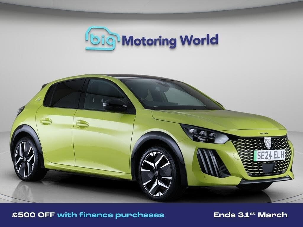 £500 towards your finance depo-Our Peugeot E-208 is finished in Yellow. Specification includes a range of fantastic features including £500 towards your finance deposit, Apple CarPlay, Privacy Glass, Bluetooth, Parking Sensors, Ambient Lighting, Cruise Control, Climate Control, Touch Screen Control, Multi Function Steering Wheel Specification information is supplied by CAPHPI and may vary to the actual car. This data does not form any part of a buying contact. Please check specification prior to purchase in-store. The MOT is valid until June 2027, visit bigmotoringworld.co.uk for more photos, a 360 tour, service history and a free HPI report.Were BIG on peace of mind and this Yellow Peugeot E-208 has completed our comprehensive 200 point inspection and passed all checks. Its ready for you to drive away with immediate collection in-store. We include a 90-day warranty as standard plus an option to extend for up to 3 years.Reserve this car exclusively for you, safely and securely at bigmotoringworld.co.uk, with a fully refundable £99 deposit. Test drive before you buy, with no commitment, no hassle and a completely haggle free experience. Still searching and want to see thousands more cars? We are BIG on choice with over 8000 cars to choose from.Visit our award winning web site bigmotoringworld.co.uk.Were Big Motoring World and were BIG on what matters to you.