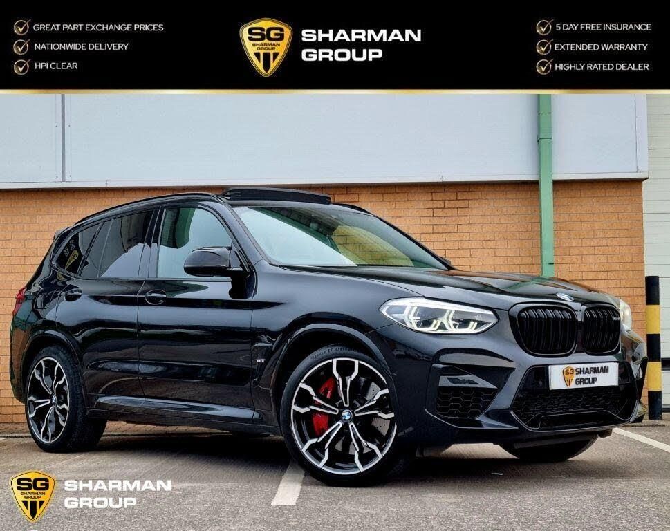Spectacular BMW X3M Competition xDrive. Finished In Metallic Black With 2 Original keys, Full Service History And A Outstanding Spec Inc: Panoramic Glass Sunroof, Harman Kardon Sound System, Parking Assistant, Comfort Package, Upgraded M Steering Wheel, Sport Seats, Head Up Display, Red Brake Callipers, Gloss Black Interior Trim, Reverse Camera, Heated Front And Rear Seats, M Drivers Pack, Electric Seat Adjustment with Memory, Full Merino Leather Black, Sun Protection Glazing, Digital Cockpit, Ambient Lighting, Navigation System - BMW Professional Multimedia, 21in Alloy Wheels - M Light V-Spoke Style 765 M Bicolour with Mixed Tyres, BMW Icon Adaptive LED Headlights, BMW ConnectedDrive Online Services, Parking Assistant, High-Beam Assistant, Cruise Control with Brake and Speed Limiting Function, DAB Digital Radio And Much Much More...Every Effort Has Been Made To Ensure The Accuracy Of The Above Information, But Errors May Occur, Please Check With The Sales Executive Upon Enquiry. Part Exchanges Considered. All Major Credit & Debit Cards Accepted. We Offer Various Dealer Facilities Including Servicing, MOTS, Valeting, Detailing, Protective Coatings, Comprehensive Warranties, HPI Clear And A Full After-Sales Service. Open 7 Days A Week.-PANROOF+HK SOUND+COMFORTPK+HUD-Call us now on 0161 319 1253 / 07760 668 236 for more information. www.sharmangroup.co.uk
