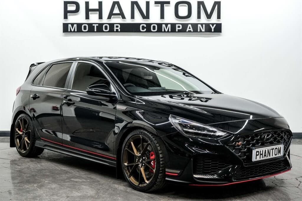 12V Power Outlet - Front Console and Luggage Compartment,19in Alloy Wheels - Forged - Matte Bronze Dark Finish,ABS - Anti-Lock Brake System,AEB - Autonomous Emergency Brake with Forward Collision Warning System,Active Head Restraints,Active Sound Design - Electric,Active Variable Exhaust System,Airbags - Front - Front Side and Curtain Airbags,Alarm - Thatcham Category 1,Armrest - Front with Storage,Armrest - Rear with Cup Holders,Audio Control with Voice Recognition,Automatic Dimming Rear View Mirror,Automatic Headlight Follow Me Home Function,Automatic Headlights with Dusk Sensor,Automatic Windscreen Wipers with Rain Sensor,Blind Spot Collision Warning,Bluetooth Connectivity with Voice Recognition,Central Locking - Remote Control,Childproof Rear Door Locks,Climate Control with Automatic De-Fog System for Front Windscreen,Cruise Control,Cup Holders - Front,Curtain Airbag Rollover Sensor,Daytime Running Lights - LED,Deadlocks,Door Mirror Puddle Lights,Door Mirrors - Black,Door Mirrors - Electric Adjustment and Heated with Power Folding Function,Door Pockets - Front and Rear,Door Sill - N Branded Aluminium,Drive Mode Button,Drive-N Steering Wheel - Alcantara Grip with Red Stitching,Driver Attention Alert - DAA,Drivers Seat Electric Adjustments,Drivers Seat Extendable Seat Cushion Manual,Drivers Seat Height Adjustment - Electric,Drivers Seat Lumbar Support - Electric,Drivers Seat with Memory Function,Drivers Supervision Instrument Cluster with LCD Display 4.2in,ESS - Emergency Stop Signal,Electric Windows - Front and Rear with Anti-Trap Mechanism and One Touch Control,Electronic Limited Slip Differential,Electronic Stability Control - ESC,Electronically Controlled Suspension,Exterior Door Handles - Body Coloured,Front Passenger Airbag De-Activation Switch,Front Passengers Seat Electric Adjustments,Front Passengers Seat Extendable Seat Cushion Manual,Front Passengers Seat Height Adjustment - Electric,Front Passengers Seat Lumbar Support - Electric,Glove Compartment,HAC - Hill-Start Assist Control,Headlights - LED,Headlining - Black,Heated Front Seats,Heated Steering Wheel,Hyundai Nurburgring Test Centre Badge,ISOFIX Child Seat Anchorage Points - Rear,Immobiliser,Indicator Lights - Door Mirror - LED,Intelligent Speed Limit Warning - ISLW,Interior Door Handles - Black,Interior Front Map Reading Light and Sunglasses Holder,Interior Light - Front - Rear and Luggage Compartment,Lane Departure Warning System with Lane Keeping Assist,Lane Follow Assist - LFA,Launch Control,Locking Wheel Nuts,N Exclusive - Rear Diffuser,N Exclusive Front and Rear Bumpers,N Exclusive Radiator Grille,N Exclusive Sport Cluster,N Grin Shift Button,N Mode Button,N Power Shift,N Track Sense,N-Drive Limited Edition Decals,Parking Brake - Manual,Parking Sensors - Front and Rear,Parking System - Rear Camera and Guidance System,Pedals - Aluminium,Performance Information Display,Performance Tyres - 19in Pirelli P Zero,Phone Connection - Android Auto,Phone Connection - Apple CarPlay,Privacy Glass - Rear Windows and Tailgate,Rack Motor Driven Power Steering,Radio - Digital DAB,Rear Break Lamp in Signature N Triangular Design,Rear Lights - LED,Rear Spoiler,Rear Stiffness Bar,Rear Windscreen Wiper - 1 Speed Non Intermittent,Red Brake Caliper with N Logo,Reinforced Brakes,Rev-Matching System,Seat Belts - Red - Front and Rear,Seatbelt Reminder - Front and Rear,Seatbelts - Height Adjustable Front,Shark Fin Antenna,Shift Timing Indicator,Smart High Beam,Smart Key - Keyless Entry with Engine Start-Stop Button,Smoked Tail Light,Speakers - 2 Tweeters - 2 Front - 2 Rear,Speed Sensitive Automatic Door Locking,Split Folding Rear Seats - 60-40,Static Cornering Lights,Steering Column - Height and Reach Adjustable,Steering Wheel with Audio - Phone and Cruise Controls,Sun Visors with Driver and Passenger Illuminated Vanity Mirrors,Torque Vectoring,Touchscreen Satellite Navigation 10.25in with Bluelink and Live Services,Trim - Artificial Leather Door Centre,Trip Computer,Twin Exhaust Pipe,Tyre Mobility Kit,Tyre Pressure Monitoring System - TPMS,USB Connection - Centre Console,Window Surround - Black,Windscreen Washer Fluid Sensor and Warning Indicator,Wireless Phone Charging Pad,eCall - Emergency Call Button,Leather-Alcantara - Monoform Seats - Black with Red Contrast Stitching,Phantom Black