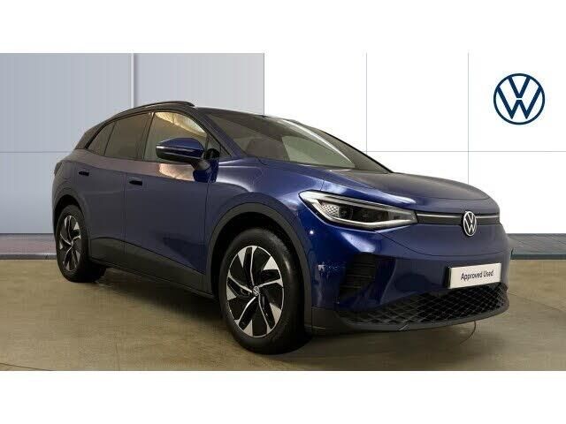 The Volkswagen ID.4 Pro Match presents a confident and contemporary take on the electric SUV, pairing clean design with everyday usability. Finished in Blue Dusk Metallic, it carries a calm, modern presence on the road, while the spacious five-door layout makes it well suited to family life or longer journeys. As an electric model, it delivers smooth, near-silent progress that feels refined and reassuring from the outset. Inside, the cabin is thoughtfully laid out with a clear focus on comfort and technology. Heated seats add a welcome touch of luxury, particularly on colder mornings, while keyless entry and the electric tailgate make daily use effortless. The driving experience is relaxed yet responsive, with instant power delivery that suits both urban driving and motorway cruising. This example is offered with the reassurance of a 1 year Approved Used Warranty, adding extra peace of mind for the next owner. Well equipped, easy to live with and impressively polished, the ID.4 Pro Match stands out as a practical electric SUV that blends Volkswagen's familiar quality with forward-looking efficiency.