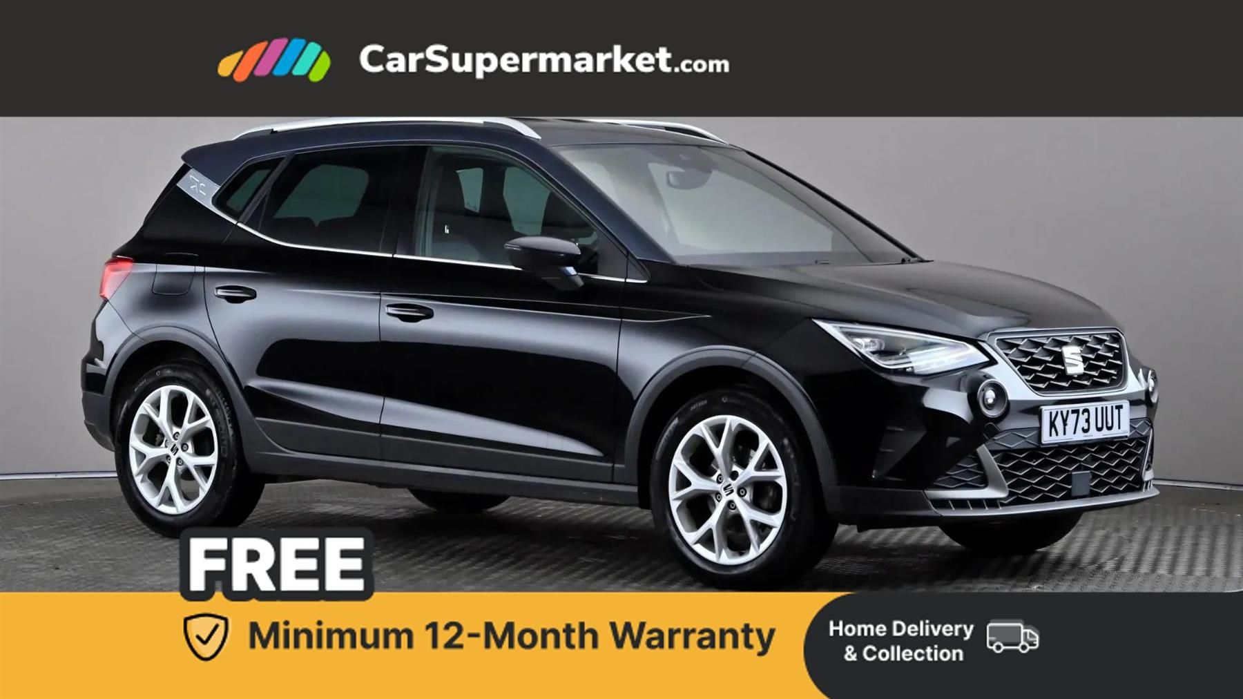 'Lights On' Reminder warning buzzer,8" Digital cockpit,Digital clock,E-call,Electric speed sensitive power steering,Full Link Smartphone Integration with Mirror Link, Apple Car Play, Google Android Auto with USB Type C cable for Apple and Android compatibility,Lane keeping system,Low fuel warning light,Outside temperature display,Rear parking sensor,RPM counter,Seat connect with safety, service, remote and online,SEAT Drive profile - Four different models normal-sport-eco-individual, steering response, throttle response,Trip computer,Wireless phone charger,9.2" colour touchscreen with navigation system, voice control and USB port (type c),Bluetooth interface for hands free and audio streaming,DAB digital radio and AM/FM radio,Steering wheel mounted audio controls,Anti theft roof antenna,Auto dimming interior rear view mirror,Automatic activation of hazard warning lights,Body coloured bumpers,Body coloured door handle inserts,Chrome roof rails and window surrounds,Dark tinted rear windows,Electric front/rear windows,Electrically adjustable, heated and folding door mirrors,Front fog lights with cornering function and rear fog light,FULL LED automatic headlights with dynamic headlight range control, coming and leaving home, LED daytime running lights,LED rear tail lights and licence plate lights,Protective side mouldings,Rain sensing wipers,Rear side wing doors,Rear spoiler,Rear window wash/wipe,Roof colour door mirrors,Third brake light,Twin exhaust pipe styling hidden exhaust pipe,Visible VIN plate,Windshield wiper with intermittent control and potentiometer,2 cupholders,3 seat bench in 2nd row,60/40 split folding rear seat,Aircare filter,Black interior roof,Cloth upholstery,Double boot floor,Driver sunvisor with covered mirror + card holder,Dual zone climate control,Front courtesy light with front reading lights,Front sport seats,Gear shift indicator,Height adjustable front seats,Height/reach adjustable steering column,Illuminated boot,Instrument lighting with brightness control,Interior ambient lighting,Interior light in footwell, central console and door panel,ISOFIX points in outer rear seats with top tether anchorage points,Passenger sunvisor with vanity mirror,Perforated flat bottomed leather steering wheel/gear knob/handbrake with red stitching and FR logo,Single front passenger seat,Two front and three rear height adjustable headrests,Interior chrome pack - Arona,3 point seatbelts on all rear seats,ABS,Active front headrests,Child locks on rear doors,Driver and front passenger airbags with front passenger airbag de activation, front side and curtain airbags,Electronic stability control,Emergency Brake Assist (EBA) and front assist,Front and rear seatbelt reminder,Hill hold control,Multi-Collision braking,Tiredness recognition system,Traction control,Tyre pressure monitoring system,Alarm with back-up horn,Electronic engine immobiliser,Locking wheel bolts,Remote central locking + deadlocks,Tow away protection,Titan black dashboard,17" Dynamic alloy wheels