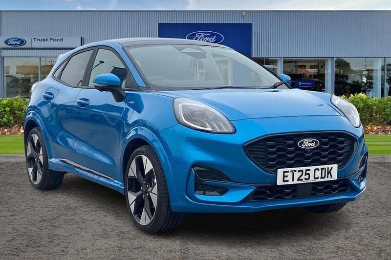 Drivers Assistance Pack, BLIS Blind Spot Information System, Adaptive Cruise Control, Power Tailgate, Panoramic Glass Roof , Heated Seats, Heated Steering Wheel, Charging Mat, 360 Camera, Bang Olufsen Sound System , Satellite Navigation System, Part Leather Seats , Push Button Start, Privacy Glass, Climate Control, Cruise Control + Speed Limiter, Quickclear heated windscreen, Driver alert system, Emergency call service, Ford easy fuel, Full digital 12.8 instrument cluster, Lane keeping aid, Power assist steering, Selectable drive modes(Normal, Eco, Sport, Slippery and Trail), Speed sign recognition, Auto dimming interior rear view mirror, Automatic headlights with rain sensing wipers and auto high beam, Front fog lamps, LED daytime running lights, LED rear lamps, LED third brake light, Power foldable heated door mirrors with puddle lamps and puma logo protection, Rear side wing doors, Rear wiper, ST-Line X body styling kit, 3 seat bench in 2nd row, Centre console with armrest and stowage, Ford megabox extended bootspace, Front and rear head restraints, Front floor mats, Manual 4 way driver seat adjust with lumbar adjustment, Manual 4 way passenger seat with lumbar support, Single front passenger seat, 3 rear seatbelts, Child safety lock, Electronic stability control (ESC) and hill start assist, Pre-collision assist with autonomous emergency braking, pedestrian/cyclist detection & post-collision braking, Tyre pressure monitoring system (TPMS)