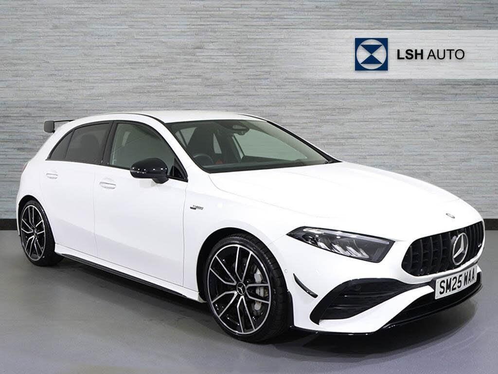 This exceptional Mercedes-Benz A35h AMG Touring Edition, registered in 2025, boasts a full dealership service history and remains manufacturer approved, offering peace of mind with 24 months warranty. This four wheel drive, Euro 6 compliant model features a powerful 2.0 litre petrol hybrid engine, delivering exhilarating performance. It has had only one owner and its MOT is valid until July 2028. Inside, you will find comfortable heated front seats, dual Bluetooth interfaces for seamless connectivity, and convenient wireless charging.The AMG Touring Edition truly stands out with its impressive acceleration, reaching 0-62mph in just 4.7 seconds, a testament to its superior engineering compared to other vehicles in its class. Furthermore, the generous boot space ensures practicality for all your needs, making this A Class a compelling choice for those seeking both performance and everyday usability. Blind Spot Assist is also included, enhancing safety on every journey.-AERO PACK, NIGHT PACK, SAT NAV-Mercedes-Benz A Class A35 4Matic Touring Edition 5dr Auto-LSH Auto UK Ltd - An LSH Group Company. The Worlds Largest Retailer of Mercedes-Benz Passenger Cars