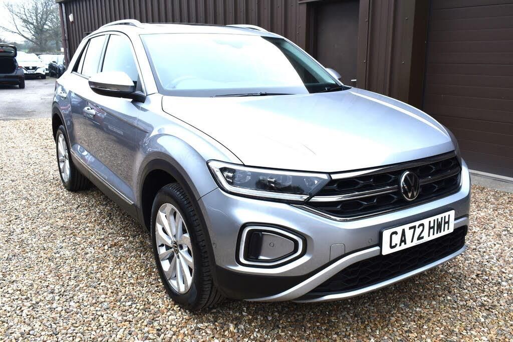 Finished in Silver with cloth interior, one owner from new, front and rear parking sensors, electric folding mirrors, air con, eco start/stop function, automatic, electric tilt/slide panoramic roof, park assist, sat nav, Bluetooth, DAB radio, full VW service history, HPI clear, finance available with this vehicle.... for further information please contact us on 01483 236417. This 2022 Volkswagen T-Roc TSI Style is a superb example, having had only one owner since new. This stylish compact SUV is equipped with a responsive 1.5 litre petrol engine, meeting Euro 6 emissions standards. It features a Bluetooth mobile phone interface for seamless connectivity, and benefits from automatic headlight control with LED separate daytime running lights and a coming home leaving home feature. Further enhancing visibility and safety are LED Plus and LED Performance headlamps. For a more relaxed driving experience, the Driver Assistance Package includes adaptive cruise control.The T-Roc TSI Style offers impressive performance, achieving 0 to 62 miles per hour in just 8.3 seconds, a figure that demonstrates its agility compared to other vehicles in its class. Its fuel economy is also a strong point, achieving a highlight of 46 miles per gallon, which indicates its efficiency. Furthermore, this model boasts low CO2 emissions, making it a more environmentally conscious choice.