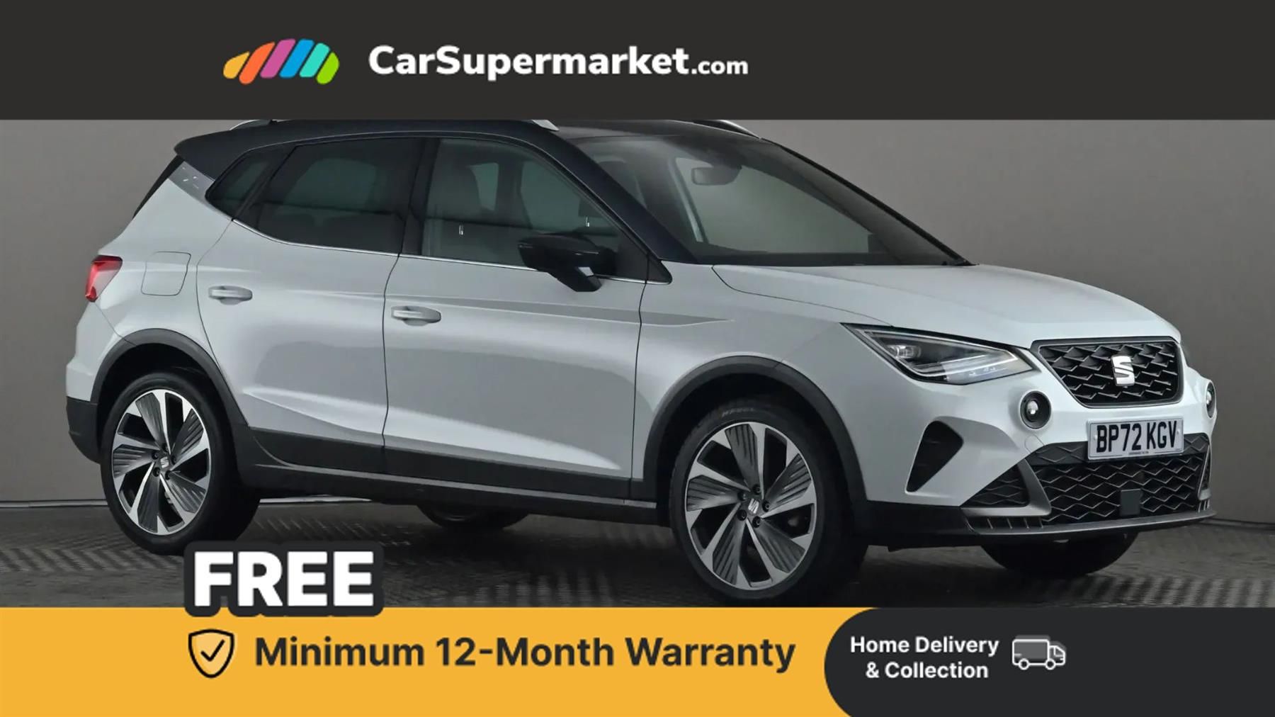 'Lights On' Reminder warning buzzer,10" Digital cockpit,Digital clock,E-call,Electric speed sensitive power steering,Full Link Smartphone Integration with Mirror Link, Apple Car Play, Google Android Auto with USB Type C cable for Apple and Android compatibility,Low fuel warning light,Outside temperature display,Rear parking sensor,RPM counter,Seat connect with safety, service, remote and online,SEAT Drive profile - Four different models normal-sport-eco-individual, steering response, throttle response,Trip computer,Wireless phone charger,9.2" colour touchscreen with navigation system, voice control and USB port (type c),Bluetooth interface for hands free and audio streaming,DAB digital radio and AM/FM radio,Steering wheel mounted audio controls,Anti theft roof antenna,Auto dimming interior rear view mirror,Automatic activation of hazard warning lights,Body coloured bumpers,Body coloured door handle inserts,Chrome roof rails and window surrounds,Dark tinted rear windows,Electric front/rear windows,Electrically adjustable, heated and folding door mirrors,Front fog lights with cornering function and rear fog light,FULL LED automatic headlights with dynamic headlight range control, coming and leaving home, LED daytime running lights,LED rear tail lights and licence plate lights,Protective side mouldings,Rain sensing wipers,Rear side wing doors,Rear spoiler,Rear window wash/wipe,Roof colour door mirrors,Third brake light,Twin exhaust pipe styling hidden exhaust pipe,Visible VIN plate,Windshield wiper with intermittent control and potentiometer,2 cupholders,3 seat bench in 2nd row,60/40 split folding rear seat,Aircare filter,Black interior roof,Double boot floor,Driver sunvisor with covered mirror + card holder,Dual zone climate control,Front comfort seats,Front courtesy light with 2x front and 2x rear reading lights,Front seat back storage pockets,Gear shift indicator,Heated front seats,Height adjustable front seats,Height/reach adjustable steering column,Illuminated boot,Instrument lighting with brightness control,Interior ambient lighting,Interior light in footwell, central console and door panel,ISOFIX points in outer rear seats with top tether anchorage points,Microsuede cloth upholstery,Passenger sunvisor with vanity mirror,Perforated flat bottomed leather steering wheel/gear knob/handbrake with red stitching and FR logo,Single front passenger seat,Two front and three rear height adjustable headrests,Interior chrome pack - Arona,3 point seatbelts on all rear seats,ABS,Active front headrests,Child locks on rear doors,Driver and front passenger airbags with front passenger airbag de activation, front side and curtain airbags,Electronic stability control,Emergency Brake Assist (EBA) and front assist,Front and rear seatbelt reminder,Hill hold control,Multi-Collision braking,Tiredness recognition system,Traction control,Tyre pressure monitoring system,Alarm with back-up horn,Electronic engine immobiliser,Locking wheel bolts,Remote central locking + deadlocks,Tow away protection,Titan black dashboard,18" Performance Cosmo grey matt alloy wheels