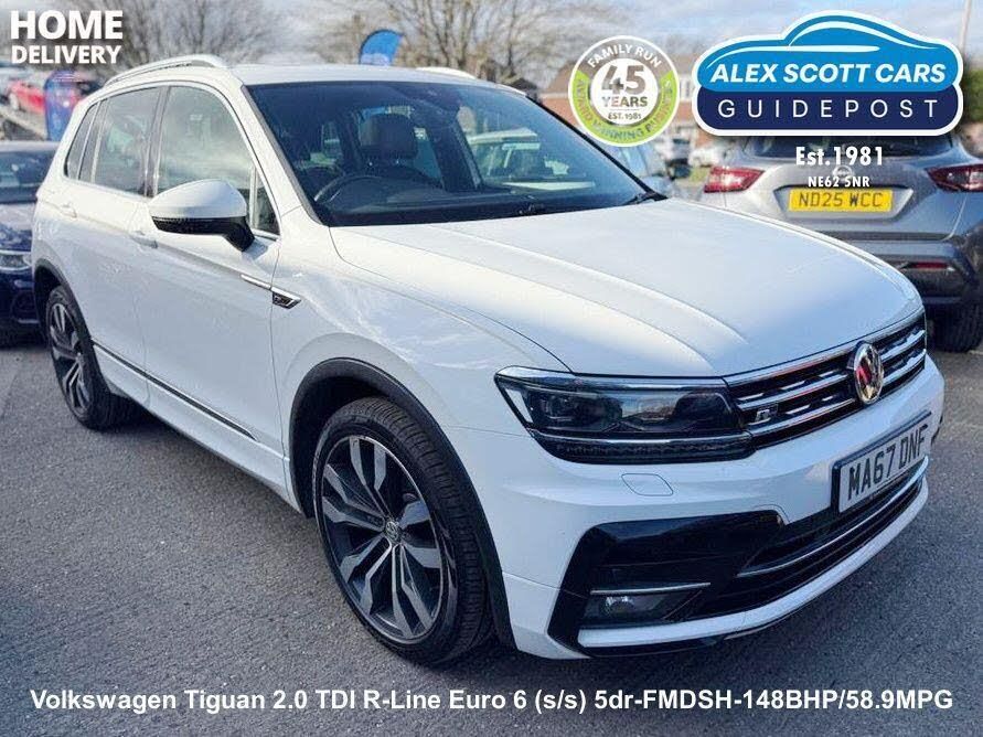 This 2017 Volkswagen Tiguan TDI R-Line boasts a full service history and has had only one owner from new, ensuring excellent provenance. This stylish SUV features a powerful yet efficient 2.0 litre diesel engine, meeting Euro 6 emissions standards. The R-Line trim enhances its sporty appeal, and you can drive with confidence knowing it comes with a 12 month MOT. Inside, you'll find the practical Winter Pack with heated seats, the Composition Media System with Bluetooth connectivity, and Car-Net App Connect for seamless smartphone integration with Android Auto and Apple CarPlay. Automatic driving lights are activated by a dusk sensor, and the 3Zone electronic climate control ensures comfort for all occupants.This Tiguan offers significant advantages over similar vehicles. Its impressive fuel economy of 59 mpg means lower running costs, and its low CO2 emissions are also beneficial. The Tiguan also benefits from a low insurance group, making it an economical choice for many drivers. Furthermore, you'll appreciate the generous boot space, perfect for luggage or shopping.-1 Owner-Pristine condition-ALEX SCOTT CARS GUIDEPOST Award Winning Family Run Business Since 1981 TEL 01670 823777