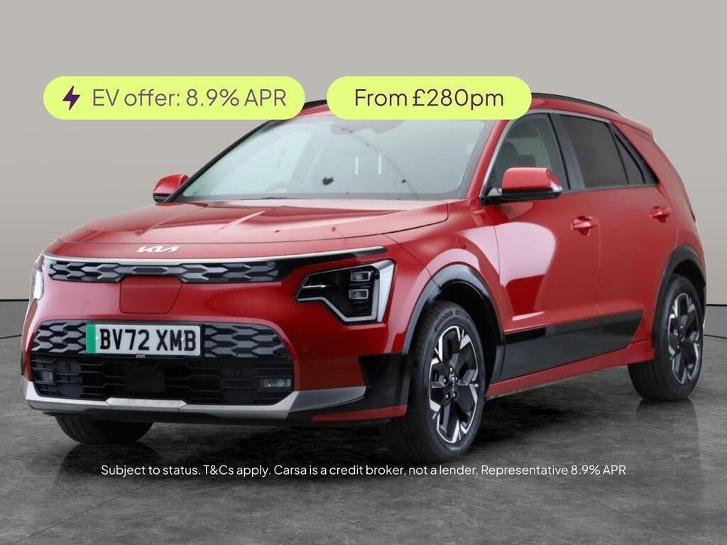 Experience the innovative Kia Niro Electric SUV, finished in striking red and equipped with impressive features that make every drive a pleasure. Enjoy the comfort of heated seats and a heated steering wheel, while LED headlights light your way. Stay confident with Blind Spot Assist and Lane Departure Warning. Effortlessly park using the reversing camera and find your way with the built-in Sat Nav. Keep connected with Bluetooth and savour smooth journeys on stylish 17in alloy wheels. 2 services recorded, last serviced on 04/12/2024 at 15,678 miles. MOT to 07/11/2026. Visit our website for service history, online valuation, full vehicle specification plus multiple images. This vehicle is VAT qualifying. Any feature/option specified here is from 3rd party data. We cannot guarantee the accuracy of any specification supplied by a 3rd party. We recommend that you physically check the specification of the vehicle on site prior to purchase. This information does not form part of the buying contract. Terms & Conditions apply. We have over 2,000 cars available from our 10 national branches, check our website to see all our stock. Our Trustpilot rating is 4.4/5 with over 9,000 reviews.