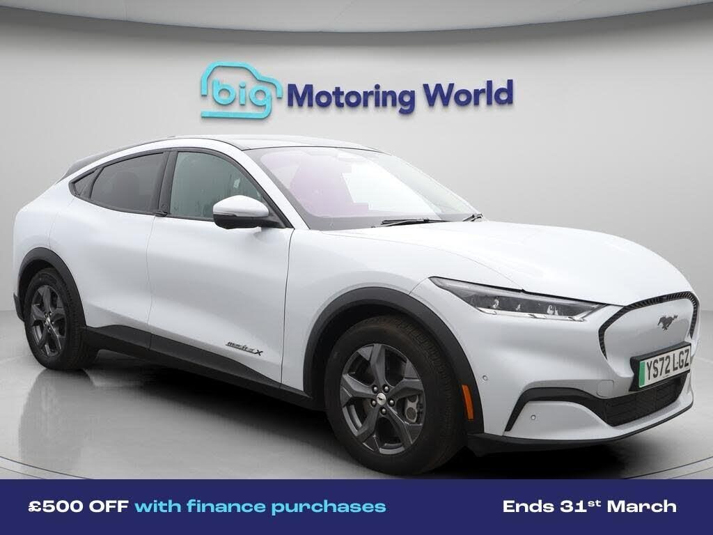 £500 towards your finance depo-Our Ford Mustang Mach-E comes with optional extras worth £3,300. Specification includes a range of fantastic features including £500 towards your finance deposit, Panoramic Roof, 18'' alloy wheels, Leather Seats, Apple CarPlay, Adaptive Cruise Control, Electric Seats, Bang & Olufsen Speakers, Premium Sound System, Lane Assist Specification information is supplied by CAPHPI and may vary to the actual car. This data does not form any part of a buying contact. Please check specification prior to purchase in-store. The MOT is valid until November 2026, visit bigmotoringworld.co.uk for more photos, a 360 tour, service history and a free HPI report.Were BIG on peace of mind and this White Ford Mustang Mach-E has completed our comprehensive 200 point inspection and passed all checks. Its ready for you to drive away with immediate collection in-store. We include a 90-day warranty as standard plus an option to extend for up to 3 years.Reserve this car exclusively for you, safely and securely at bigmotoringworld.co.uk, with a fully refundable £99 deposit. Test drive before you buy, with no commitment, no hassle and a completely haggle free experience. Still searching and want to see thousands more cars? We are BIG on choice with over 8000 cars to choose from.Visit our award winning web site bigmotoringworld.co.uk.Were Big Motoring World and were BIG on what matters to you.