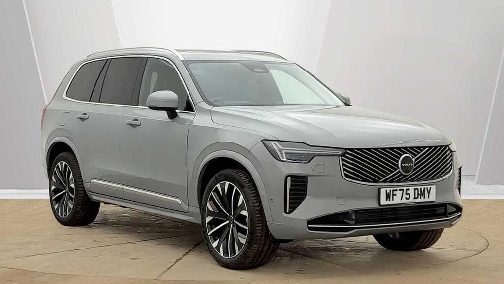 Blond headlining, Grey Ash decor, Tailored sport steering wheel. Charcoal, 8-speed Geartronic? automatic, Pedals, Crystal gear shift by Orrefors?, Third row air conditioning, Four-zone climate system, Afterrun parking climate, Passenger airbag cut-off switch, Dual-stage airbags, Knee airbag. driver side, Panoramic roof, Road Sign Information, Lane Keeping Aid and Lane Departure Warning, Front grille with chrome frame and chrome inserts, Heated grill emblem, Matrix-design LED headlights, Headlight cleaning, Trailer lamp control, 12.3-inch driver display, Google Assistant. Google Maps and Google Play Store, Adaptive cruise control, Head-up display, Intelligent Speed Assist (ISA), Volvo Cars App remote functions, Air-ventilated subwoofer, Digital Audio Broadcasting (DAB+), Bowers & Wilkins High Fidelity audio system, Power retractable door mirrors, Power passenger seat with memory, Wireless phone charging, Central locking controls. front and rear doors, Remote key, Door mirror covers. colour coordinated, Double locking, Tinted rear windows, BLIS? and Cross Traffic Alert, Alarm, Power child safety lock, Keyless entry with hands-free power tailgate, Air purifier and remote cabin pre-cleaning, Digital owners manual, Textile mats. third-row, Tailored dashboard and door top panels, Ventilated nappa leather upholstery, Front seat massage, Power driver seat with memory, Power passenger seat, Front seat ventilation, Heated front seats, Heated rear seats, Power folding outer rear head restraints. second row, 7 seats, Mechanical release second seat row, Power side bolsters, Power 4-way lumbar support, Textile interior cabin floor mats, Protection net, Grocery bag holder, Rear centre armrest, Integrated booster cushion, Illuminated vanity mirrors, Interior illumination. high level, Power outlet. load compartment, First-aid kit, Load cover, Rear door sun curtains, Auto-dimmed rear view mirrors, Hidden storage, Power cushion extension. driver, Hill Start Assist, Tyre pressure monitoring, Active air suspension, Oncoming Lane Mitigation, Rear Collision Warning, Hill Descent Control, Slippery road alert, Emergency brake light, Heated steering wheel, Adaptive power steering, 21? 5-multi spoke black diamond cut, Temporary mobility kit, Lockable wheel bolts, Wiper blades with integrated washers, Body-coloured door handles with ground lighting, Tailgate scuff plate. stainless steel, Illuminated sill moulding, Bright aluminium trim around the side windows, Roof rails. bright aluminium, Warning triangle, Laminated side and rear windows, Park assist. front. rear and sides, Whiplash injury protection, Inflatable Curtain, Side impact protection, Intelligent Driver Information System (IDIS), High positioned rear brake lights, ISOFIX mounting points. rear seat, Safety belts, Rain sensor, Steering wheel remote control, Humidity sensor, Start/Stop technology, Bluetooth? connection, Android Auto, Pilot Assist, Electric cabin heater and cooler, 360? camera, Alcohol lock software (not available in the UK), Protective cap kit. Matt Tech Grey, Apple CarPlay, Comfort front seats, 11.2-inch centre display, Charging station cable. 6m (16A)