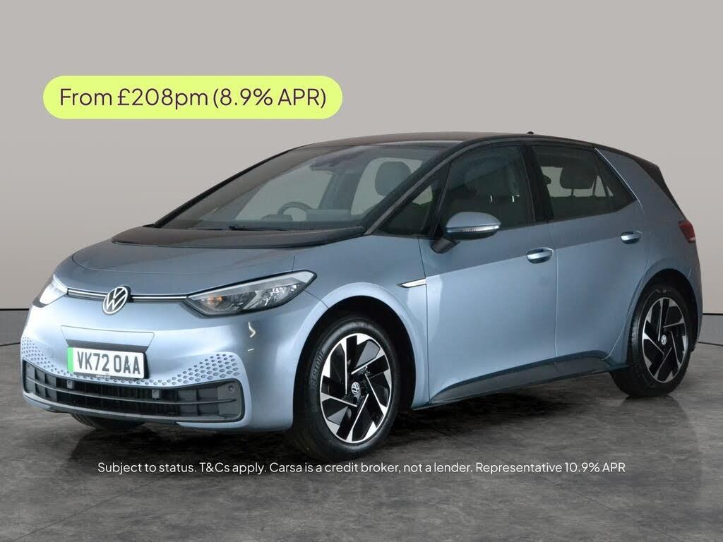 Discover the Volkswagen ID.3 an electric hatchback designed for the future. Enjoy the advanced Comfort Pack, Adaptive Cruise Control, and Blind Spot Assist for a relaxing drive. Stay connected with Apple CarPlay, Bluetooth Audio Streaming, and Car-Net App-Connect. Park with ease thanks to front and rear sensors. The stylish blue exterior is complemented by striking LED headlights. Effortless driving meets cutting-edge technology in the ID.3. 1 service recorded, last serviced on 05/12/2025 at 8,475 miles. MOT to 29/09/2026. Visit our website for service history, online valuation, full vehicle specification plus multiple images. This vehicle is VAT qualifying. Any feature/option specified here is from 3rd party data. We cannot guarantee the accuracy of any specification supplied by a 3rd party. We recommend that you physically check the specification of the vehicle on site prior to purchase. This information does not form part of the buying contract. Terms & Conditions apply. We have over 2,000 cars available from our 10 national branches, check our website to see all our stock. Our Trustpilot rating is 4.4/5 with over 9,000 reviews.