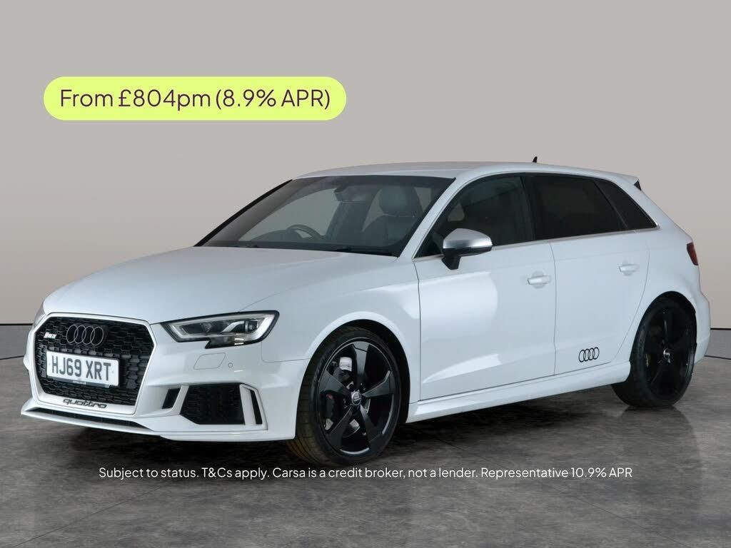 Experience the thrill of the Audi RS3 Sportback, enhanced with premium options including a Bang & Olufsen Sound System, Keyless Entry, and a Reversing Camera. Enjoy crystal-clear audio, seamless navigation with MMI Navigation Plus and Apple CarPlay, and the comfort of Alcantara heated seats. LED headlights light the way, while wireless charging, WiFi, and Bluetooth audio streaming keep you connected. Practical features include cruise control, driving modes, and parking sensors front and rear. This stylish white automatic is ready for your next adventure. 6 services recorded, last serviced on 16/02/2026 at 50,983 miles. MOT to 16/02/2027. Visit our website for service history, online valuation, full vehicle specification plus multiple images. Certain features listed may be available via subscription packages at extra costs, please consult with Audi for details. Any feature/option specified here is from 3rd party data. We cannot guarantee the accuracy of any specification supplied by a 3rd party. We recommend that you physically check the specification of the vehicle on site prior to purchase. This information does not form part of the buying contract. Terms & Conditions apply. We have over 2,000 cars available from our 10 national branches, check our website to see all our stock. Our Trustpilot rating is 4.4/5 with over 9,000 reviews.
