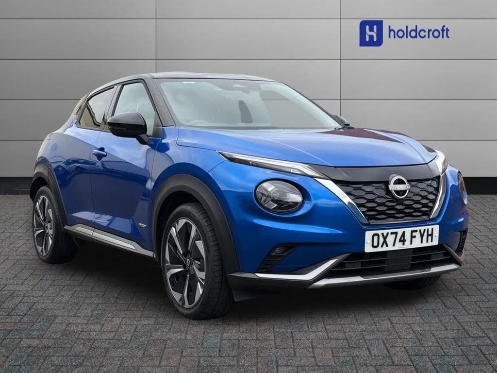 Parking Sensor, Advanced Safety, Lane Assist, Sat Nav, Apple CarPlay/Android Auto, Wireless Charger, Bluetooth, Aux In, DAB, Automatic Wipers, AC/Climate, Ambient Lighting, Isofix, Alloys;Buy a used Nissan Juke 1.6 Hybrid Tekna+ 5dr Auto
