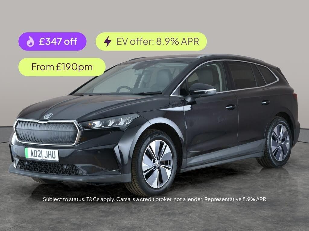 Experience the innovation of the Skoda Enyaq, finished in sleek black. Enjoy seamless connectivity with Apple CarPlay and SmartLink, stay comfortable with a heated steering wheel, and take the stress out of parking with the Parking Package. LED headlights brighten your journeys, while Sat Nav, climate control, Wifi and keyless start all make everyday driving a breeze. Let the Enyaq redefine your expectations of electric SUVs. 2 services recorded, last serviced on 01/10/2025 at 79,216 miles. MOT to 16/08/2026. Visit our website for service history, online valuation, full vehicle specification plus multiple images. This vehicle is VAT qualifying. Any feature/option specified here is from 3rd party data. We cannot guarantee the accuracy of any specification supplied by a 3rd party. We recommend that you physically check the specification of the vehicle on site prior to purchase. This information does not form part of the buying contract. Terms & Conditions apply. We have over 2,000 cars available from our 10 national branches, check our website to see all our stock. Our Trustpilot rating is 4.4/5 with over 9,000 reviews.