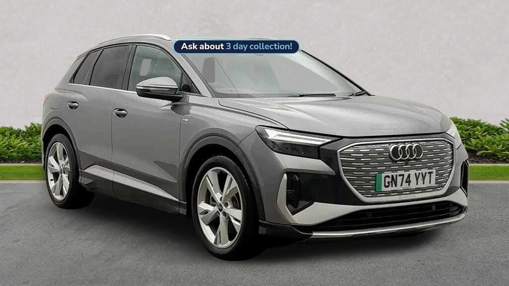 GN74YYT. Glasgow Audi are offering a rare opportunity to own this AUDI Q4 S line 45 e-tron 210,00 Kw. This excellent example has full service history, was supplied by our group and has been maintained by us too. Since being returned to us it has been fully checked over by our fully trained, experienced and skilled technicians and is ready to go. ===================================================================== Audis compact electric SUV, the Q4 e-tron delivers modern styling, a refined ride, and all the benefits of EV driving. Spacious and tech-focused, its perfect for those making the jump to premium electric mobility.Standard features on this car include Integrated SATELLITE NAVIGATION with real-time routing and traffic updates. SATELLITE NAVIGATION via APPLE CAR PLAY which allows integration using apps like Maps to help manage your journeys. FULL LEATHER delivering a luxury feel in the cabin. CLIMATE CONTROL which automatically regulates cabin temperature for you. VIRTUAL COCKPIT so that you can customise the digital dashboard with maps, gauges, and media. CRUISE CONTROL to maintain a steady speed without constant pedal input. FRONT AND REAR PARKING SENSORS to help manoeuvring in tight spaces whether you are going forward or reversing. REAR CAMERA for easier and safer reversing. HEATED FRONT SEATS to keep your comfortable in cold weather conditions. Plus lots more. ===================================================================== 150 MULTI POINT CHECK | AUDI PARTS |FACTORY TRAINED TECHNICIANS 12 MONTH MANUFACTURER BACKED WARRANTY & ROADSIDE ASSISTANCE. AUDI CONNECTED|HISTORY CHECKS ===================================================================== Lookers are an authorised representative for a wide range of award-winning car manufacturers, providing you with an unparalleled choice of quality and approved used cars, currently for sale. Our exceptional standards ensure you receive the best possible service when you purchase with us, ensuring peace of mind when you drive away with your new vehicle. With us representing so many great brands we are an excellent position to offer you a fair and transparent price for your part exchange. At Lookers, we care about our customers and want to ensure that the price you see is the price you pay. Our Transparent pricing policy simply means, honest, straightforward pricing offering our vehicles at the best price possible; ensuring no haggling or hassle for you.