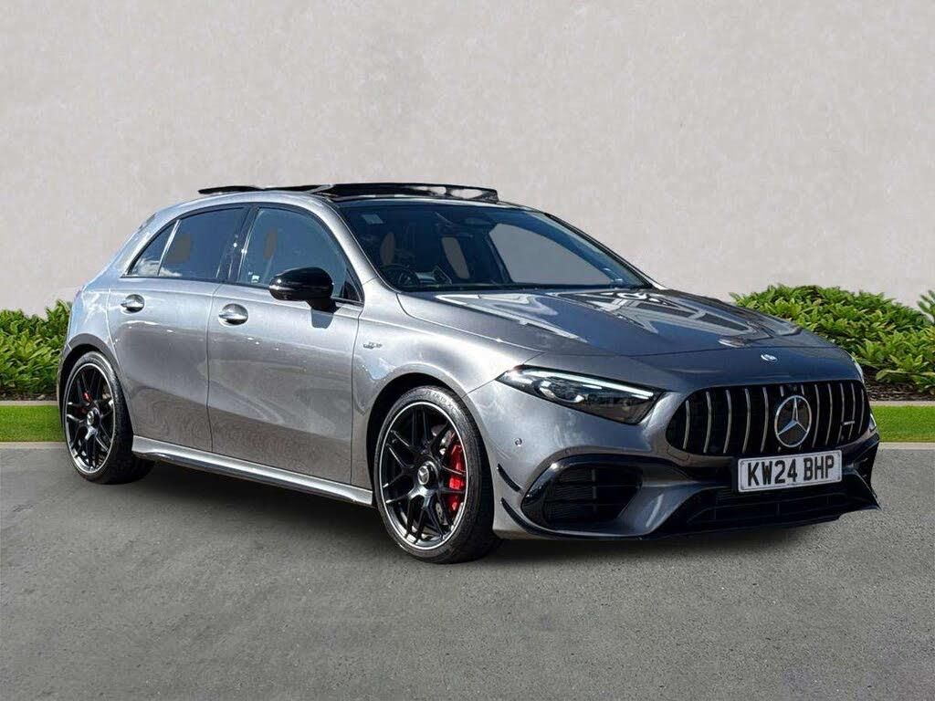 MBUX Multimedia System, Air Conditioning - Air Vents Black with Surround in Silver Chrome, AMG Illuminated Door Sills with AMG Lettering and with Exchangable Cover, Exit Warning Assist, Sound System - Burmester Surround Sound System - 590W, Driving Modes - AMG DYNAMIC SELECT with Drive Programs - Slippery - Comfort - Sport - Sport Plus - Individual - RACE, Heated Front Seats, ESP Curve Dynamic Assist, Mercedes Me Connect - Standard Services, Luggage Compartment Cover, Bumpers - Body Coloured, Bodystyling - Side Skirts - Body-Coloured, Live Traffic Information, Adaptive Brake Assist with Hold Function and Hill Start Assist, ISOFIX and Top-Tether Child Seat Fixing Points in Rear - Two Outer Seats, Glass - Rear Windscreen - Heated with Timer Control, Seat Belts Reminder - Front and Rear, ESP - Electronic Stability Programme with ASR - Acceleration Skid Control, Interior Mirror - Reading Lamps in Black - Frameless, Radiator Grille - AMG-Specific Radiator Grille in High-Gloss Chrome with AMG Lettering, Lamp Failure Indicator, KEYLESS-GO - Starting Function, Cup Holder - Twin Front, AMG Night Package, Seats - 4-Way Lumbar Support Adapts the Seat Contour to Your Lower Back and Provides Support, Sun Visors with Illuminated Vanity Mirrors, Hey Mercedes - Voice Activation, Dual Bluetooth Interfaces, Childproof Locks - Manually Operated for Rear Doors and Electrically Operated for Rear Power Windows, KEYLESS-GO - Lock-Unlock Doors Only, Airbags - Windowbags for Driver and Front Passenger, DAB Digital Radio Tuner, Steering Column - Manually Adjustable for Height and Reach, Cruise Control with Limiter, AMG Centre Console - Decidedly Sporty with Raised Front Section, ESP - Electronic Stability Programme - Three-Stage, Electric Windows - 4, Alarm System with Immobiliser and Interior Protection - Thatcham Category 1, First Aid Kit and Warning Triangle, Summer Tyres, Blind Spot Assist, AMG Speed-Sensitive Steering with Two Sets of Steering Characteristics, Pre-Installation for Private Car Sharing, Hard-Disk Navigation, 19in Alloy Wheels - AMG Cross-Spoke Forged Design - Painted Matt Black with a High-Sheen Finish Rim Flange, Active Lane Keeping Assist, Rear Armrest with Two Cup Holders, AMG Performance 4MATIC Plus with Torque Control, TIREFIT Tyre-Sealant Kit, Door Mirrors - Electrically Adjustable and Heated with Integrated LED Indicators, Surround Lighting with Projection of Brand Logo, Rear Axle - Multi-Link, Remote Central Locking and Crash Sensor with Emergency Opening Function, AMG Track Pace, AMG Drivers Package, Seats - Electrically Adjustable Front Memory Seats with Lumbar Support, AMG Menu with Sporty Additional Information, Active Brake Assist, Headlamp Assist - Automatic Headlamp Activation, Suspension with Adaptive Damping System, Car Wash Mode, Parking Package, AMG Brushed Stainless Steel Sports Pedals with Rubber Studs, Direct-Steer System, Seats - AMG Performance, Seat Occupancy Sensor - Front Passenger Seat, AMG Aerodynamics Package, Brake-Pad Wear Warning Indicator, Media Display - 10.25-inch with Touchscreen, AMG Suspension, Owners Manual - English, Seat Belts - Rear Three-Point - 3, Centre Armrest - Front with Stowage, Trim - Aluminium AMG Design Black - Silver, Steering Wheel - Aluminium Gear Shift Paddles, Interior Lighting - 64-Colour Ambient Lighting, Fluorescent Jacket for Driver, Window Line - High-Gloss Black, Steering Wheel - AMG Steering Wheel Buttons, Bonnet with Power Domes, Speed-Sensitive Power Steering, Instrument Cluster - Outside Temperature Display, Crash-Responsive Emergency Lighting, Floor Mats - AMG, Instrument Display - 10.25in Digital Display, Radio Aerial Roof Spoiler, Mercedes Me - Remote Services, Beltline Strips - High Gloss Black, Interior Lighting - Light and Sight Package, Exhaust System - Two Round Twin Tailpipe Trim Elements, Seats - Rear Seat Backrests - Split Folding 40-20-40, ATTENTION Assist, Door Handles - Body Coloured, Adaptive Brake Lights, Seats - AMG Performance High-End Package, Memory Package - Drivers Seat Electrically Adjustable with Memory Function, Seat Belts - Black, Mirror Package, AMG Leather Package, Traffic Sign Assist, AMG A 45 S Bodystyling, Active Bonnet - Pedestrian Safety Measure which Detects an Impact and Raises Bonnet by 65mm, Smartphone Integration, Rear Fog Light, Seat Comfort Package, Air Conditioning - THERMOTRONIC Luxury Automatic Climate Control - Two-Zone with Display, GUARD 360 Vehicle Protection with Anti-theft Alarm System, Wider Wheel Arches for AMG Wheels, Head-Up Display, MBUX Augmented Reality for Navigation, Brakes - AMG High-Performance Brake System with Red-Painted Brake Calipers and Black AMG Lettering at the Front - Ventilated and Perforated Brake Discs, Privacy Glass, Steering Wheel - AMG Performance Steering Wheel in Nappa Leather - MICROCUT Microfibre, Stowage - Compartment with Retractable Cover in Centre Console, Automatic Child Seat Recognition Sensor, Instrument Cluster - Trip Computer in Multi-Function Display with Current Fuel Consumption Indicator, LED Tail Lamps, MBUX Interior Assistant with 3D Camera in the Overhead Control Panel, Airbags - Dual Stage - Driver and Front Passenger, Speed Limit Assist, Rear Windscreen Wiper, Exhaust System with Valve Control Dependant on Drive Program, Roof Lining - Black, ABS - Anti-Lock Braking System with BAS - Brake Assist, Collision Prevention Assist, Wireless Charging, Instrument Cluster - Service Indicator ASSYST, Exhaust System - AMG Real Performance Sound, Rain-Sensing Windscreen Wipers with Two Sensitivity Settings, Seats - Multi-Contour Seat Package, AMG Bodystyling - AMG Front Apron with Front Splitter and AMG Rear Apron with Visible Tailpipe Trim Elements, AMG Centre Console is Finished with Trim in Silver Chrome, Instrument Cluster - Fluid Level Warning Indicator for Fuel - Oil - Coolant and Washer Fluid, High Level Third Brake Light - LED, Panoramic Glass Sunroof, Wheel Arches - Flared AMG Wings with TURBO 4MATIC+ Lettering, Electric Parking Brake, 