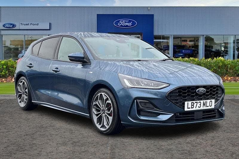 12.3 Digital instrument cluster, Bluetooth system, Digital clock, Easy fuel capless refuelling system, Eco mode, Ford SYNC4 Nav with 13.2'' touchscreen, DAB, Emergency Assistance, Apple Carplay & Android Auto, B&O Premium Audio with 10 speakers, FordPass Connect, Lane keeping system - lane keeping alert and lane keeping aid, PAS, Rev counter, Selectable drive mode, Service interval indicator, Trip computer, Wireless charging pad, Auto headlamps (on/off), Body coloured door handles, Electrically operated front and rear windows with one touch opening and closing, Electrically operated heated power fold door mirrors with puddle lamp with side indicators, Front variable intermittent wipers with electric wash, Heated rear window, LED daytime running lamp, LED rear lamps, LED third brake light, Polished twin tailpipe, Privacy glass, Quickclear heated windscreen, Rain sensor, Rear side wing doors, Tailgate wash/wipe, Unique ST-Line grille, full bodystyling kit, and large body coloured rear spoiler, 3 rear headrests, 3 seat bench in 2nd row, Dual zone electronic air temperature control, Full sensico premium upholstery, Height adjustable front headrests, Isofix child seat preparation, Load through ski hatch, Manual 2-way passenger seat adjust, Power 4-way driver seat adjust, with power lumbar adjust, Reach + rake adjustable steering column, Single front passenger seat, 3x3 point rear seatbelts, ABS+Electronic Brake force Distribution, Auto hold function, Driver airbag, EDL traction control, Electronic parking brake, Electronic stability control, Front and rear seatbelt reminder, Front inertia reel height adjustable seatbelts with pre-tensioners, Front passenger airbag, Front side airbags, Passenger airbag deactivate switch, Post collision braking, Pre collision assist with autonomous emergency braking and pedestrian/cyclist detection, Red brake calipers, Remote/power child rear door locks, Side curtain airbags, Three rear inertia reel lap/diagonal seatbelts, Tyre pressure monitoring system
