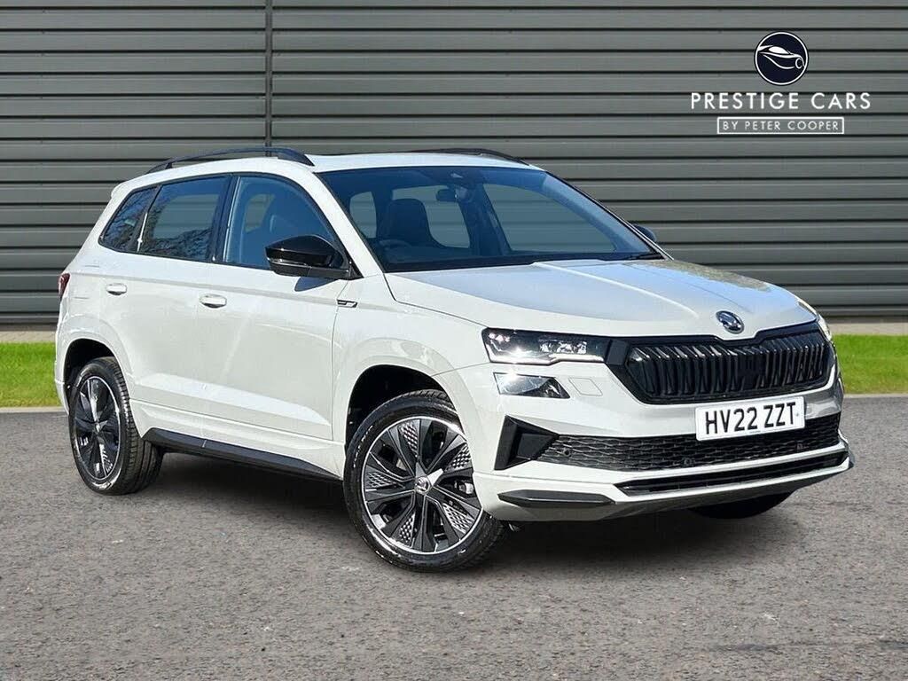 With only one owner and a full dealership service history, this 2022 Skoda Karoq TSI SportLine presents a compelling proposition. This Euro 6 compliant 1.5 litre petrol model boasts a low mileage of just 29,561 miles, with its last service completed on 30 January 2026 at 28,802 miles. It comes with a 6 month warranty and a 12 month MOT provided on purchase, offering peace of mind. Notable features include front and rear parking sensors with parking assistance, a rear camera, wireless phone charging, and a panoramic glass roof. For comfort, the front seats are heated.The Skoda Karoq TSI SportLine offers a dynamic driving experience, accelerating from 0 to 60mph in a swift 8.7 seconds. This performance, combined with its generous boot space, sets it apart from other vehicles in its class. The inclusion of a comprehensive Parking Package further enhances its practicality, making manoeuvring and parking straightforward. This well maintained, single owner vehicle is ready for its next adventure.-Elec Sunroof|Rev Cam|CarPlay-Prestige Cars By Peter Cooper is part of The Peter Cooper Motor Group. Located at West End SO30 3DS