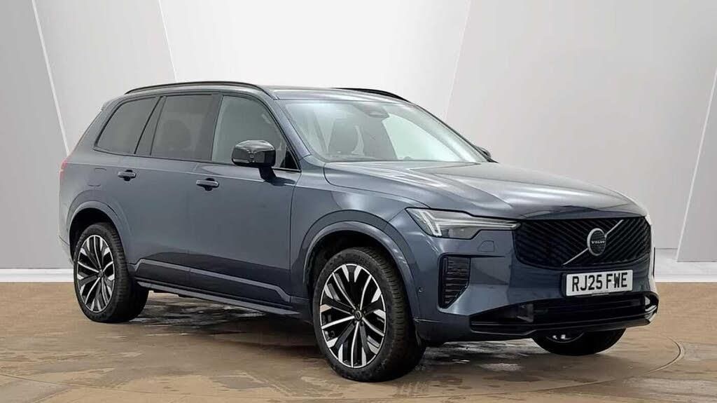 Blond headlining, Grey Ash decor, Tailored sport steering wheel. Charcoal, 8-speed Geartronic? automatic, Pedals, Crystal gear shift by Orrefors®, Third row air conditioning, Four-zone climate system, Afterrun parking climate, Passenger airbag cut-off switch, Dual-stage airbags, Knee airbag. driver side, Panoramic roof, Road Sign Information, Lane Keeping Aid and Lane Departure Warning, Front grille with high-gloss black frame and matt black inserts, Heated grill emblem, Matrix-design LED headlights, Headlight cleaning, Trailer lamp control, 12.3-inch driver display, Google Assistant. Google Maps and Google Play Store, Adaptive cruise control, Head-up display, Volvo Cars App remote functions, Air-ventilated subwoofer, Digital Audio Broadcasting (DAB+), Bowers & Wilkins High Fidelity audio system, Power retractable door mirrors, Power passenger seat with memory, Wireless phone charging, Central locking controls. front and rear doors, Remote key, Door mirror covers. high-gloss black, Double locking, Tinted rear windows, BLIS? and Cross Traffic Alert, Alarm, Power child safety lock, Keyless entry with hands-free power tailgate, Air purifier and remote cabin pre-cleaning, Digital owners manual, Textile mats. third-row, Tailored dashboard and door top panels, Ventilated nappa leather upholstery, Front seat massage, Power driver seat with memory, Power passenger seat, Front seat ventilation, Heated front seats, Heated rear seats, Power folding outer rear head restraints. second row, 7 seats, Mechanical release second seat row, Power side bolsters, Power 4-way lumbar support, Textile interior cabin floor mats, Protection net, Grocery bag holder, Rear centre armrest, Integrated booster cushion, Illuminated vanity mirrors, Interior illumination. high level, Power outlet. load compartment, First-aid kit, Load cover, Rear door sun curtains, Auto-dimmed rear view mirrors, Hidden storage, Power cushion extension. driver, Hill Start Assist, Tyre pressure monitoring, Active air suspension, Oncoming Lane Mitigation, Rear Collision Warning, Hill Descent Control, Slippery road alert, Emergency brake light, Heated steering wheel, Adaptive power steering, 21? 5-multi spoke black diamond cut, Temporary mobility kit, Lockable wheel bolts, Wiper blades with integrated washers, Body-coloured door handles with ground lighting, Tailgate scuff plate. stainless steel, Illuminated sill moulding, High-gloss black side window trim, Roof rails. glossy black, Warning triangle, Laminated side and rear windows, Park assist. front. rear and sides, Electric cabin heater and cooler, 360° camera, Alcohol lock software (not available in the UK), Protective cap kit. Matt Tech Grey, Charging station cable. 6m (16A), Apple CarPlay, Comfort front seats, 11.2-inch centre display, Home charging cable. mobile 7m (10A), Whiplash injury protection, Inflatable Curtain, Side impact protection, Intelligent Driver Information System (IDIS), High positioned rear brake lights, ISOFIX mounting points. rear seat, Safety belts, Rain sensor, Steering wheel remote control, Humidity sensor, Start/Stop technology, Bluetooth® connection, Android Auto