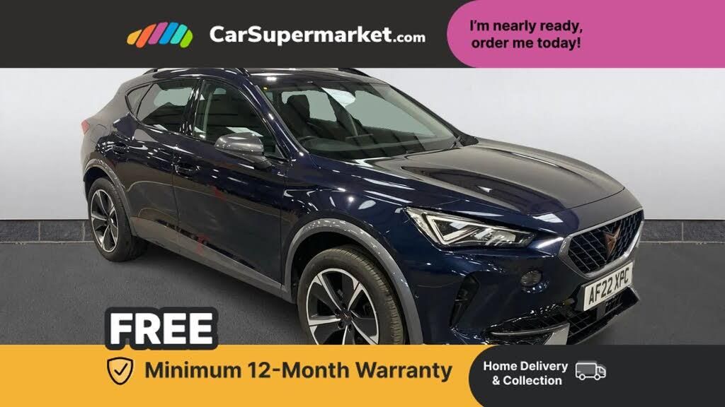 Digital cockpit and configurable dashboard,Driver alert system,Driving profile selection,E-call,Forward collision warning with automatic braking,Lane assist,Navigation system with 12'' Touchscreen Display,PAS,Predictive adaptive cruise control with speed limiter,Rear parking sensors,RPM, trip computer, outside temp gauge, instrument light brightness, low fuel warning light, lights on reminder, gearshift indicator,Service interval indicator,Start/stop system with regenerative braking,Voice control system,Wireless apple carplay,Wireless phone charger,Electronic locking differential and dynamic traction support,Standard suspension,2 front and 2 rear USB type C sockets,Auxiliary input socket,DAB radio,Auto dimming rear view mirror,Body colour door handles,Body coloured bumpers,Dark grey wing mirror,Daytime running light with automatic headlight control and coming home feature,Dynamic headlight range control,Electric front/rear windows,Electrically adjustable, heated and folding door mirrors,Front fog lamps with cornering function,Gloss black roof rails and window surrounds,LED Headlights,LED Taillights with dynamic indicator,Rain sensing wipers,Rear diffuser with black simulated exhaust pipes,Rear side wing doors,Rear wash/wipe,Third brake light,Tinted rear windows,Welcome lights,12v power supply in centre console,12V socket,12v socket in loadspace,2 front and 2 rear reading lights,230V socket,3 seat bench in 2nd row,60/40 split rear bench seat with armrest and mechanical seat release,Dust/pollen filter,Front and rear head restraints,Front centre armrest,Height/reach adjust steering wheel,Illuminated interior front door sills,Illuminated sunvisor with mirror,Interior ambient lighting,Isofix,Leather multi function heated steering wheel with gear shift paddles,Luggage tie-down hooks,Manually adjustable height and lumbar support for front seats,PVC/Cloth upholstery with copper stitching + Sport seats,Single front passenger seat,Three zone climate control with control panel in rear,Variable luggage/load compartment floor,Safety and driving pack (M) - Formentor,3 point seatbelts on all rear seats,ABS,Brake control system - ESC and brake booster,Child proof door locks,Driver and front passenger airbags with front passenger airbag de-activation,Electronic parking brake,Front and rear disc brakes,Front side curtain airbags,Hill hold control,Seat belt reminder for front and rear seats,Tyre pressure monitoring system,Anti theft alarm system,Keyless entry and start system (KESSY),Locking wheel bolts,Copper and aluminium interior detailing