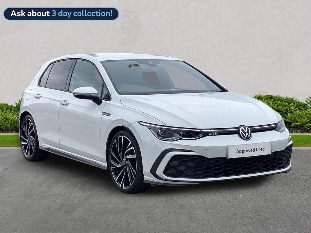 2021 Volkswagen Golf 8 GTD 2.0 TDI 200PS 7-Speed DSG 5 Door A superb example of the sought-after Golf 8 GTD, combining hot-hatch performance with diesel efficiency. Powered by the 2.0 TDI 200PS engine and paired with the smooth 7-speed DSG gearbox, this GTD delivers strong acceleration, refined cruising and excellent fuel economy. Key Features 200PS 2.0 TDI engine 7-speed DSG automatic 5-door practicality GTD sports styling and interior Digital Cockpit Pro Touchscreen infotainment with navigation Adaptive Cruise Control LED headlights & dynamic rear indicators Parking sensors Dual-zone climate control Condition Well-maintained, drives perfectly, and presents beautifully inside and out. A great blend of performance, comfort and everyday usability. A fantastic opportunity to own a modern diesel performance hatch with low running costs and premium features.