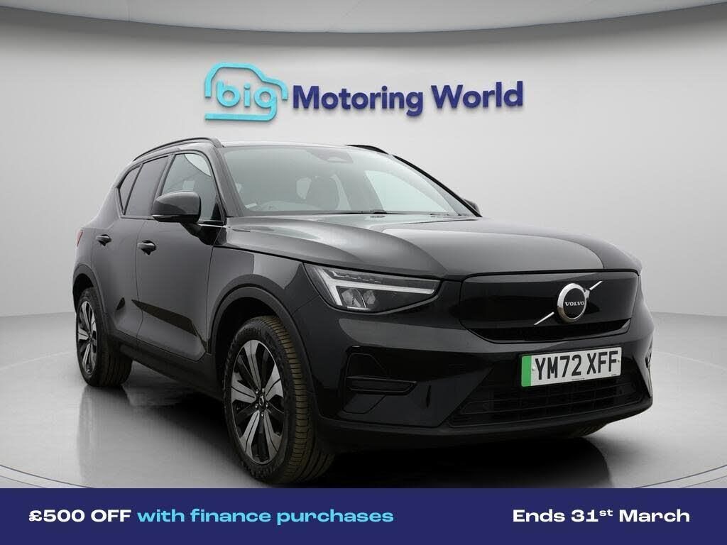 £500 towards your finance depo-Our Volvo XC40 is finished in Black. Specification includes a range of fantastic features including £500 towards your finance deposit, All Wheel Drive, 19'' Alloy wheels, Apple CarPlay, Privacy Glass, Heated Steering Wheel, Internet, Bluetooth, Parking Sensors, 2 Zone Climate Specification information is supplied by CAPHPI and may vary to the actual car. This data does not form any part of a buying contact. Please check specification prior to purchase in-store. The MOT is valid until February 2027, visit bigmotoringworld.co.uk for more photos, a 360 tour, service history and a free HPI report.Were BIG on peace of mind and this Black Volvo XC40 has completed our comprehensive 200 point inspection and passed all checks. Its ready for you to drive away with immediate collection in-store. We include a 90-day warranty as standard plus an option to extend for up to 3 years.Reserve this car exclusively for you, safely and securely at bigmotoringworld.co.uk, with a fully refundable £99 deposit. Test drive before you buy, with no commitment, no hassle and a completely haggle free experience. Still searching and want to see thousands more cars? We are BIG on choice with over 8000 cars to choose from.Visit our award winning web site bigmotoringworld.co.uk.Were Big Motoring World and were BIG on what matters to you.