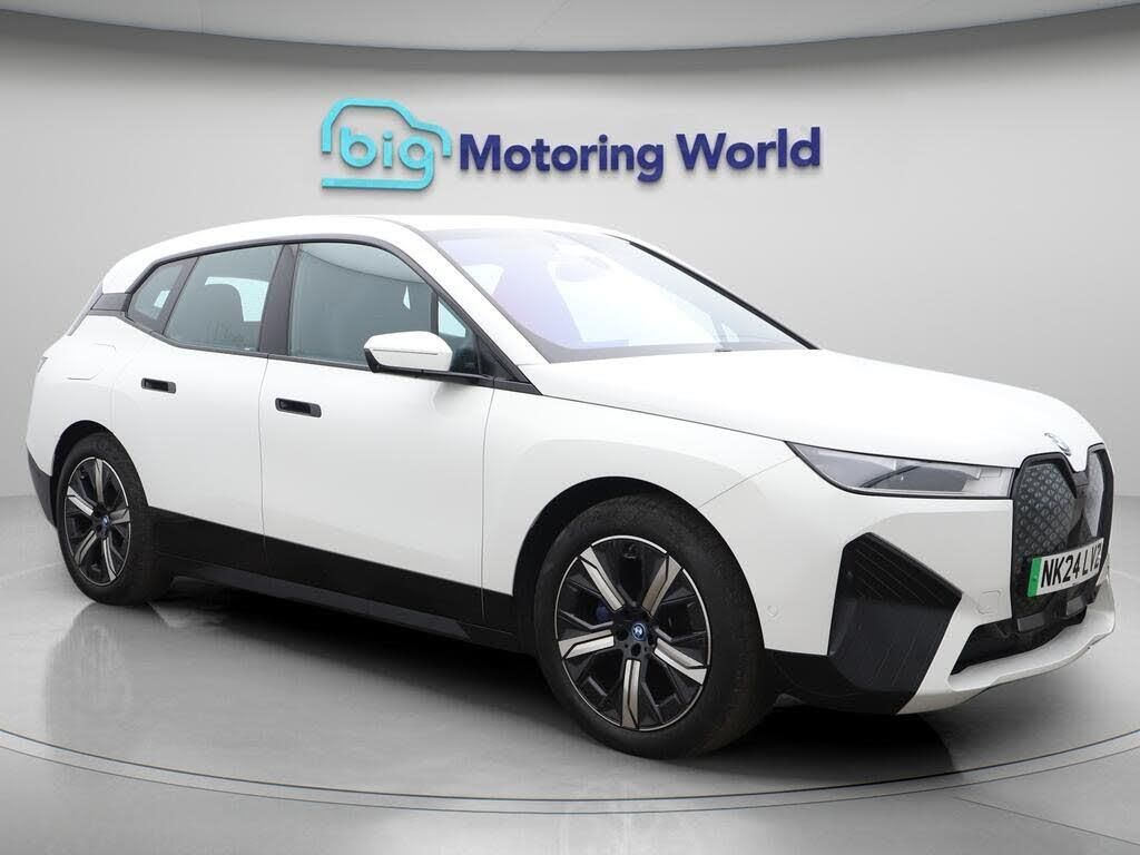 All Wheel Drive,Head up Displa-Our BMW iX comes with optional extras worth £2,295. Specification includes a range of fantastic features including All Wheel Drive, Head up Display, 21'' Alloy Wheels, Leather Seats, Apple CarPlay, Electric Seats, Harman Kardon Speakers, Connected Package Professional, M Sport Bodykit, Android Auto Specification information is supplied by CAPHPI and may vary to the actual car. This data does not form any part of a buying contact. Please check specification prior to purchase in-store. The MOT is valid until March 2027, visit bigmotoringworld.co.uk for more photos, a 360 tour, service history and a free HPI report.Were BIG on peace of mind and this White BMW iX has completed our comprehensive 200 point inspection and passed all checks. Its ready for you to drive away with immediate collection in-store. We include a 90-day warranty as standard plus an option to extend for up to 3 years.Reserve this car exclusively for you, safely and securely at bigmotoringworld.co.uk, with a fully refundable £99 deposit. Test drive before you buy, with no commitment, no hassle and a completely haggle free experience. Still searching and want to see thousands more cars? We are BIG on choice with over 8000 cars to choose from.Visit our award winning web site bigmotoringworld.co.uk.Were Big Motoring World and were BIG on what matters to you.