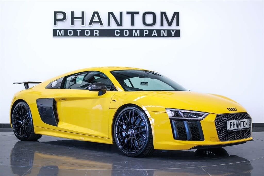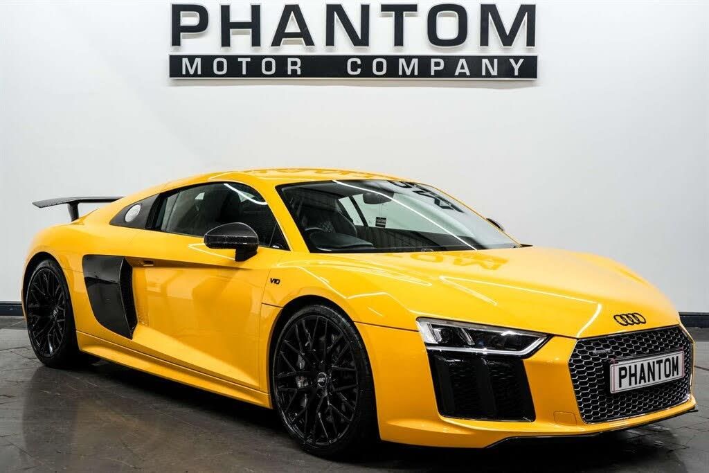 STRICT APPOINTMENT ONLY, 2025 AUTOTRADER HIGHLY RATED AWARD WINNER, LOW RATE FINANCE. Nationwide delivery available. Finished in Vegas Yellow we present a breathtaking Audi R8 Plus Quattro V10. This vehicle has just four previous owners and comes with Audi and independent services at; 6k, 7k, 14k, 21k and 25k. 5 years guarantee with lifetime MOTs available. Our R8 comes kitted with a plethora of premium features such as; Carbon fibre rear wing, EcoTune stage 1 ECU & TCU Software, Sport Plus Pack, Driver Assistance Pack, Audi Phone Box, Fine Nappa leather upholstery Sports seats and trim with stitched diamond design, Smartphone Interface, Electrically adjustable seats, Matt carbon interior inlays, R8 Sport seats, Bluetooth Interface, Audi Virtual Cockpit, Audi Drive Select with Performance Mode, Rear Diffuser Insert in Gloss Carbon and Air Outlets in Gloss Anthracite Black, R8 V10 Plus Sport Suspension, R8 3-Spoke Flat Bottomed Multi-Functional Perforated Performance Leather Steering Wheel, LED Rear Lights and Dynamic Rear Indicators, Front Spoiler Lip in Gloss Carbon, Deluxe 1-Zone Climate Control, LED Headlights, Heated Front Seats, Electronic Differential Lock, Ceramic Brakes, Tyre Pressure Loss Indicator, Sideblades - Gloss Carbon, DAB Digital Radio. Possessing a staggering amount of power from its 5.2L V10 engine, the Audi R8 has the capacities to propel its driver from 0-60mph in a matter of seconds. The lightweight construction, featuring extensive use of carbon fibre, enhances its agility, while the Quattro all-wheel-drive system ensures remarkable traction and stability. Call or email us to book a viewing at our indoor heated showroom.