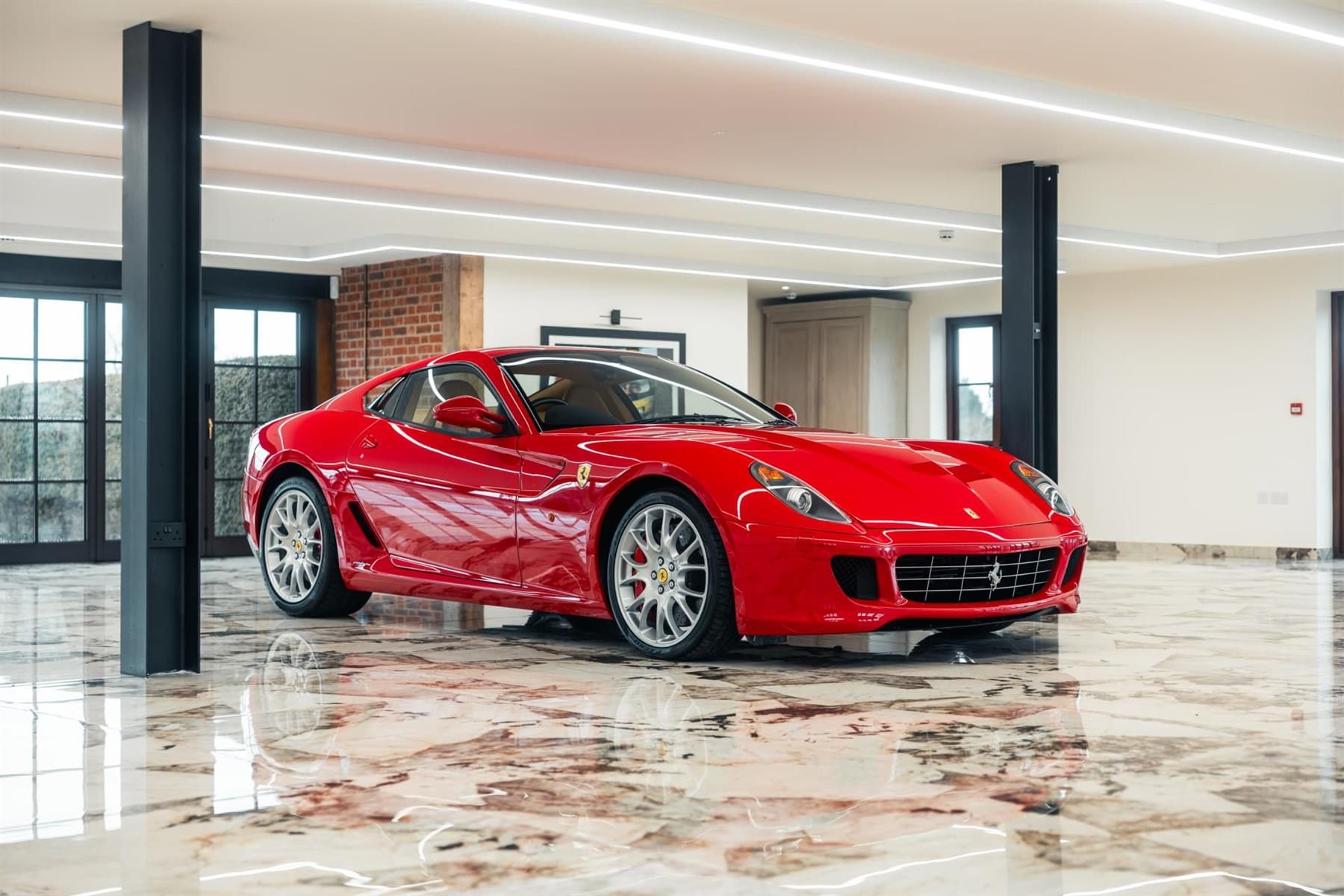 The right-hand-drive 599 GTB we’re offering was bought new by its first and only owner on 1 December 2006 from the Official Ferrari Dealer Graypaul in Edinburgh. He opted for the exterior shade of Rosso Corsa over a Beige interior with contrasting Bordeaux carpets. He specified a raft of desirable factory options including the 20-inch Monolithic Challenge-style wheels, carbon-fibre steering wheel with LED rev lights, four-point harnesses (just like those in an Enzo!) and cabin fire extinguisher.