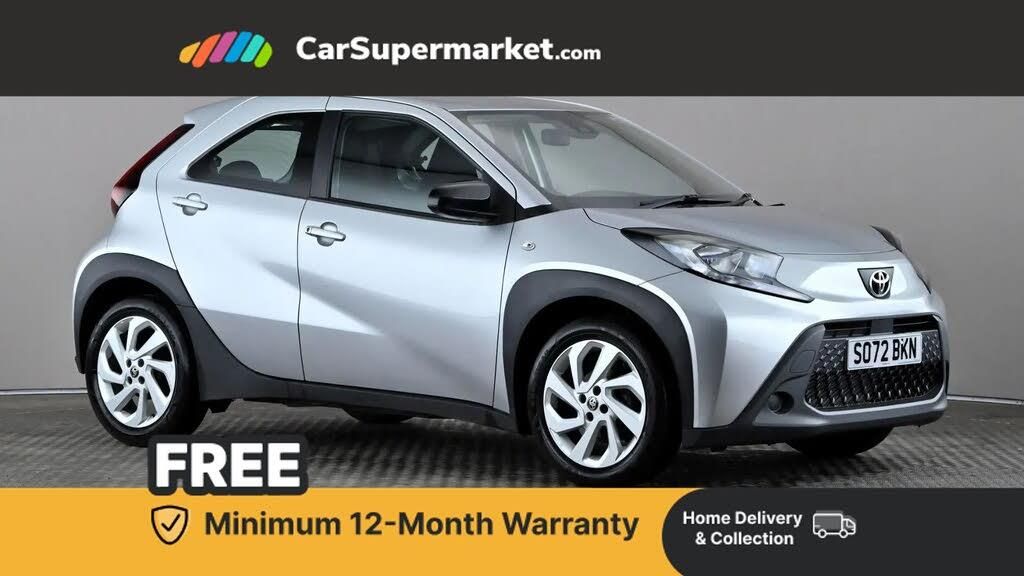 Bluetooth, Android Auto, Apple CarPlay, Adaptive Cruise Control, Cruise Control, Lane Departure Warning;The Toyota Aygo X 1.0 VVT-i Pure in silver offers Bluetooth, Android Auto, Apple CarPlay, adaptive cruise control, standard cruise control, and lane departure warning.