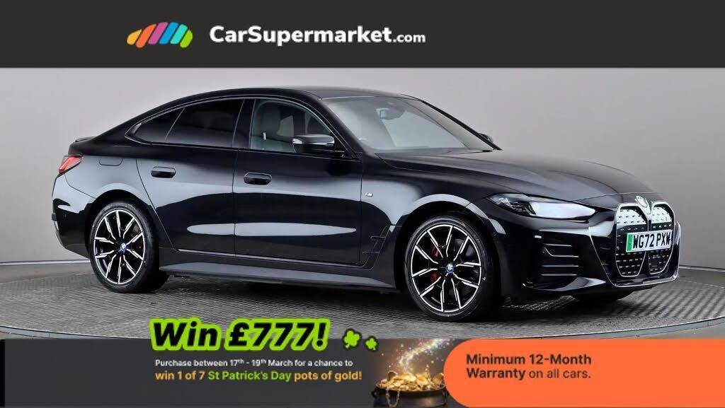 Cruise Control, Sat Nav, Heated Front Seats;BMW i4 eDrive40 M Sport 83.9kWh Auto (Pro Pack) - Black Sapphire M Sport Pro Package, 19" M Light Y-Spoke bi-colour alloys, sun protection glass, Alcantara-Sensatec interior (black with blue stitching), heated front seats and satellite navigation. Optional extras total: £3,115. MOT due: 04/01/2027