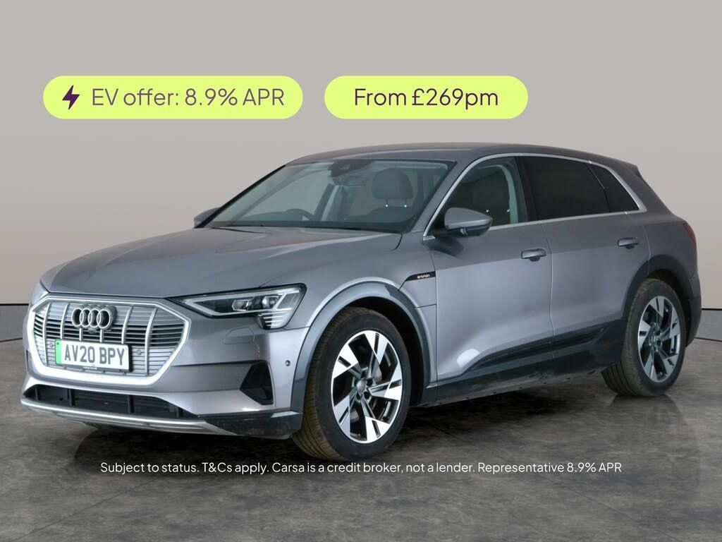 Experience electric luxury with the Audi e-tron 55 SUV in striking grey. Enjoy an upgraded sound system, MMI Navigation Plus with Sat Nav, Apple CarPlay, and seamless WiFi connectivity. Travel in comfort with heated leather seats, driver memory and electric adjustment, plus advanced adjustable suspension for a smooth ride. LED headlights illuminate your path, while a reversing camera and lane departure warning system add safety and confidence to every journey. Bluetooth audio streaming completes this standout package. 2 services recorded, last serviced on 11/06/2025 at 55,877 miles. MOT to 05/03/2027. Visit our website for service history, online valuation, full vehicle specification plus multiple images. Certain features listed may be available via subscription packages at extra costs, please consult with Audi for details. This vehicle is VAT qualifying. Any feature/option specified here is from 3rd party data. We cannot guarantee the accuracy of any specification supplied by a 3rd party. We recommend that you physically check the specification of the vehicle on site prior to purchase. This information does not form part of the buying contract. Terms & Conditions apply. We have over 2,000 cars available from our 10 national branches, check our website to see all our stock. Our Trustpilot rating is 4.4/5 with over 9,000 reviews.