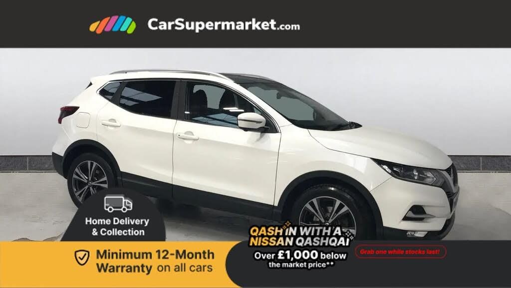 Bluetooth, Cruise Control, Parking Sensors, Lane Departure Warning, Sat Nav, Traffic Sign Recognition, Digital Radio, Privacy Glass;Nissan Qashqai 1.5 dCi N-Connecta (White) A practical and popular SUV offering efficient diesel performance and strong everyday usability. Equipped with sat nav, Bluetooth, cruise control, parking sensors, lane departure warning, traffic sign recognition and privacy glass and a 360° camera system. Last serviced 04/03/2026. MOT due 04/04/2026. Minimum 12-month warranty.