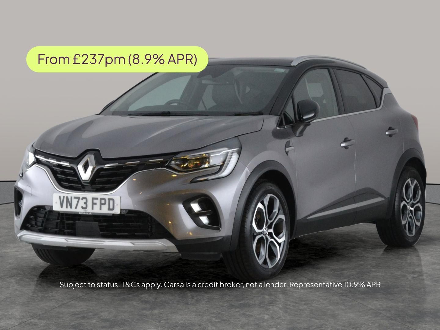 Discover the Renault Captur with stylish synthetic leather-cloth seats in black and grey, complemented by grey stitching. Enjoy Apple CarPlay, a crisp digital dash, Sat Nav, and LED headlights for modern convenience. Stay safe and confident with a reversing camera, lane departure warning, front and rear parking sensors, and traffic sign recognition. Enjoy easy cruising with automatic transmission, driving modes, cruise control, Bluetooth audio, and climate control. All rolling on eye-catching 18in alloy wheels. 3 services recorded, last serviced on 09/03/2026 at 6,789 miles. MOT to 26/10/2026. Visit our website for service history, online valuation, full vehicle specification plus multiple images. Any feature/option specified here is from 3rd party data. We cannot guarantee the accuracy of any specification supplied by a 3rd party. We recommend that you physically check the specification of the vehicle on site prior to purchase. This information does not form part of the buying contract. Terms & Conditions apply. We have over 2,000 cars available from our 10 national branches, check our website to see all our stock. Our Trustpilot rating is 4.4/5 with over 9,000 reviews.