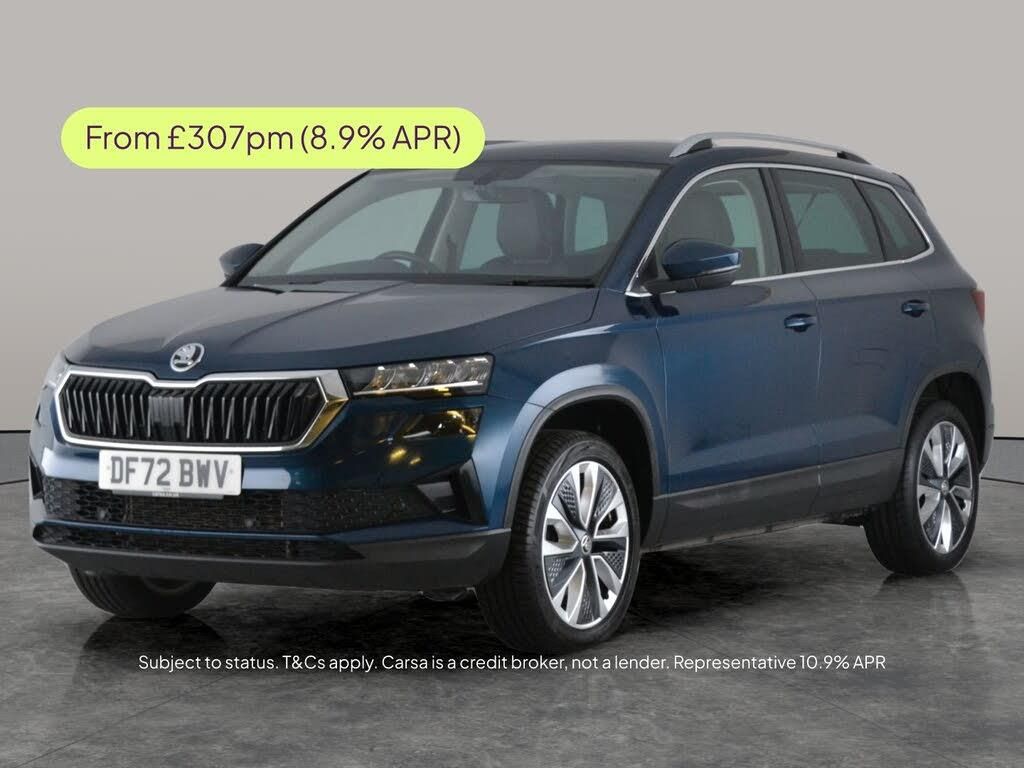 Experience comfort and technology in this stylish blue Skoda Karoq SUV. Enjoy heated seats and a heated steering wheel for those chilly mornings, while the keyless entry and comfort access make every journey effortless. Stay connected with Apple CarPlay, SmartLink, and in-car wifi, and navigate easily with built-in sat nav and a reversing camera. LED headlights illuminate your way, and with the parking package and driving modes, every drive is smooth and enjoyable. Bluetooth, cruise control, and audio streaming complete the package. 2 services recorded, last serviced on 09/03/2026 at 17,085 miles. MOT to 12/02/2027. Visit our website for service history, online valuation, full vehicle specification plus multiple images. Any feature/option specified here is from 3rd party data. We cannot guarantee the accuracy of any specification supplied by a 3rd party. We recommend that you physically check the specification of the vehicle on site prior to purchase. This information does not form part of the buying contract. Terms & Conditions apply. We have over 2,000 cars available from our 10 national branches, check our website to see all our stock. Our Trustpilot rating is 4.4/5 with over 9,000 reviews.